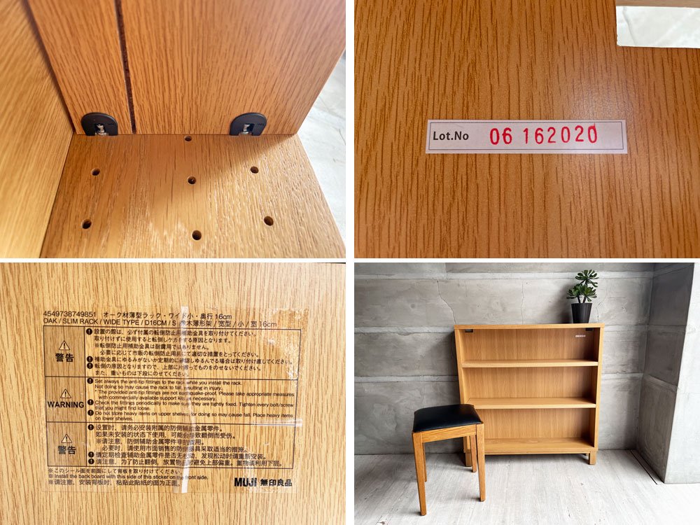 無印良品 MUJI オーク材 薄型ラック ワイド小 奥行16cm ブックシェルフ 本棚 ナチュラルスタイル 廃盤 B ♪
