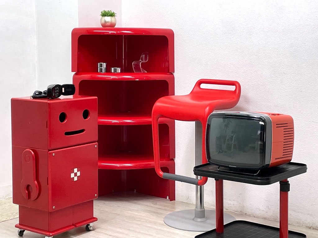 中古市場でも流通が少なく、入手が難しい80年代頃のビンテージ家具。プラスチックを含む無機質な印象は、同国のプラスチック家具メーカー" カルテル / Kartell "等との相性は勿論、イームズやネルソン、パントン等のミッドセンチュリーやスペースエイジデザインとのコーディネートも◎です!