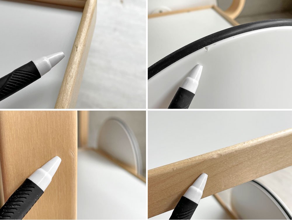 2枚の天板はホワイトラミネート仕様となっており、木製天板と比べると傷や汚れに強く、お掃除などのお手入れを簡単に行うことができます。