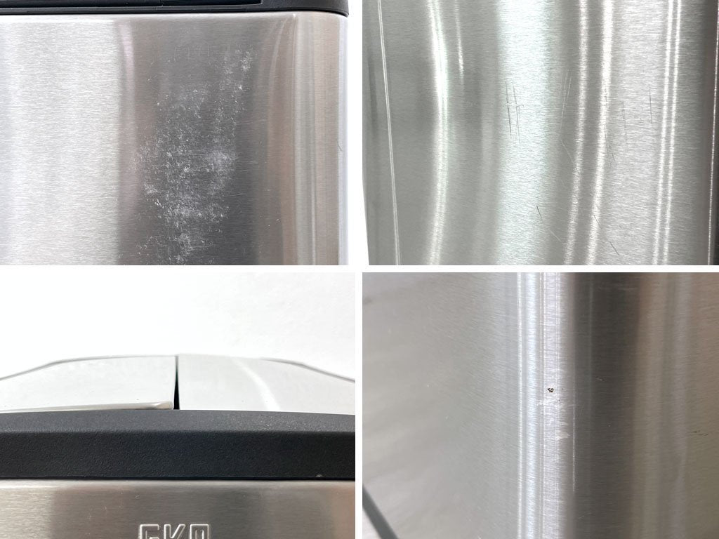 使用に伴う擦れや小傷、スクラッチ傷、金属表面のくすみ等が散見されます。また上部バタフライ扉に僅かな歪みが感じられ、開閉した際に僅かな隙間が生じております。これによる機能への影響はございませんが、予めご了承くださいませ。ダストボックス庫内特有のゴムの匂いは僅かに感じられますが、生臭さなどの不快な匂いなどはなく、実使用に影響あるような破損個所なども特にございません。