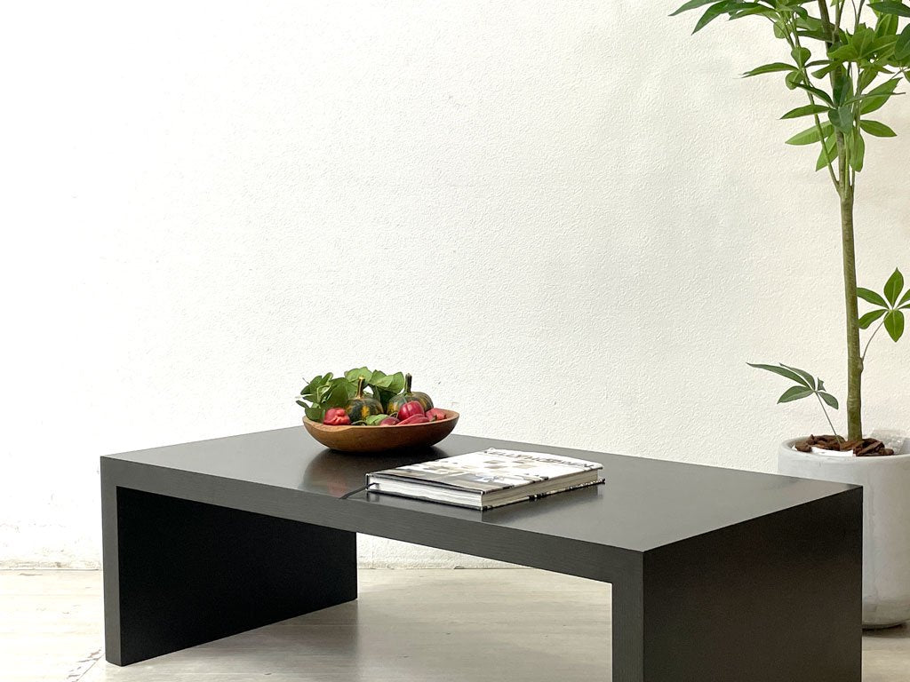 こちらは『 パウンド POUND コーヒーテーブル 』になります。直線を基調につくられたこの字型のシンプルなフォルムは、幅広いインテリアテイストに溶け込み、コーディネートに不安のある方でも安心してお使い頂けます。余計な装飾を抑えたミニマルな空間演出にも◎です!