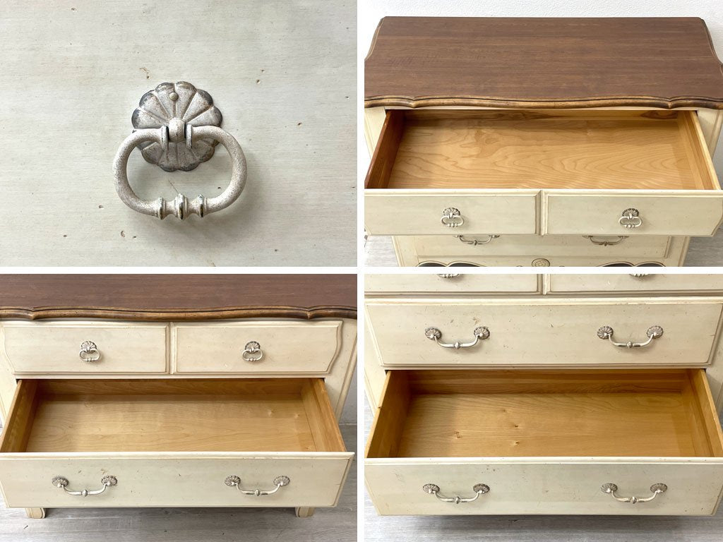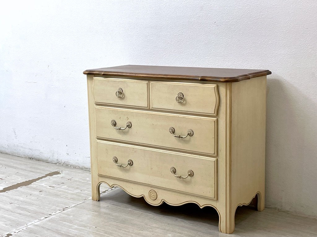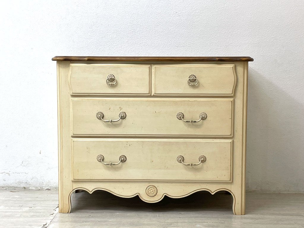 イーセンアーレン ETHAN ALLEN カントリー フレンチ チェスト Country French Chest 引出し4杯 W103 アイボリーペイント クラシカル 米国家具 ●