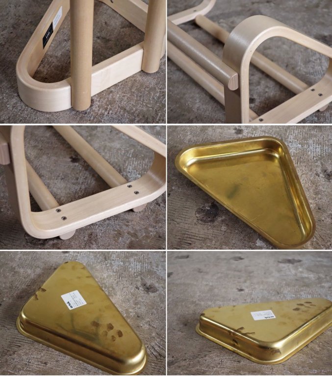 使用に伴い、フレームに細かな傷、底部に擦れと軽微なくすみ、トレーに素材特有の変色とくすみ、スクラッチ傷が見受けられます。