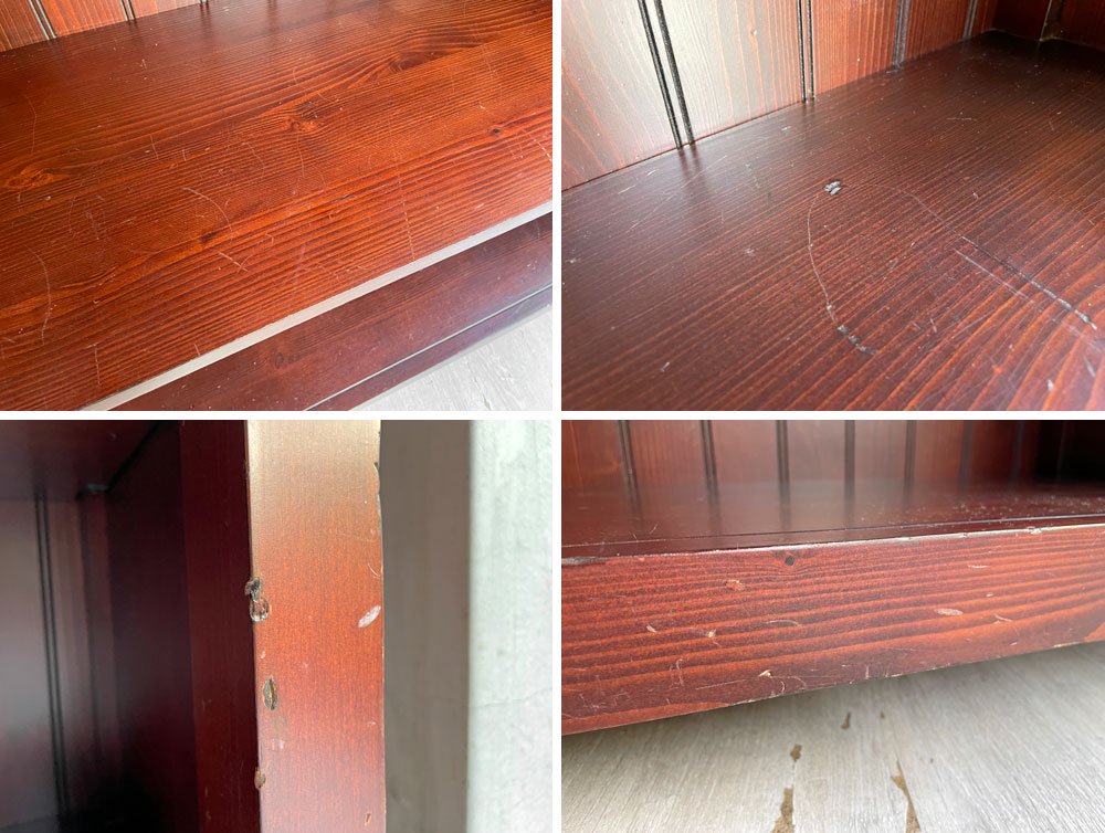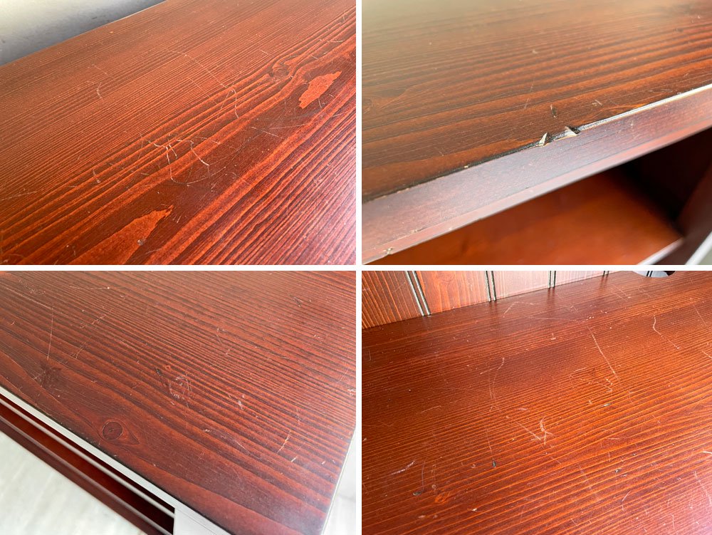 全体的に打痕や線傷、擦り傷が多く見られます。ぐらつきや割れといった極端なダメージは無く、まだまだ実用可能なコンディションを保っております。