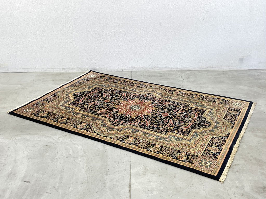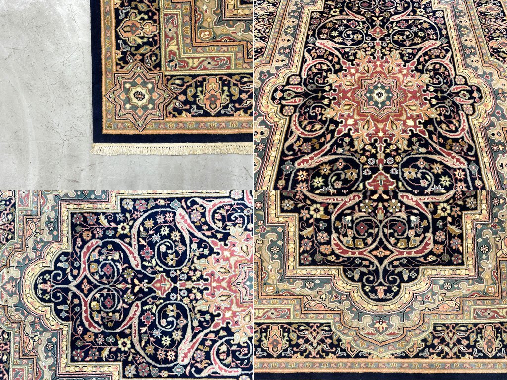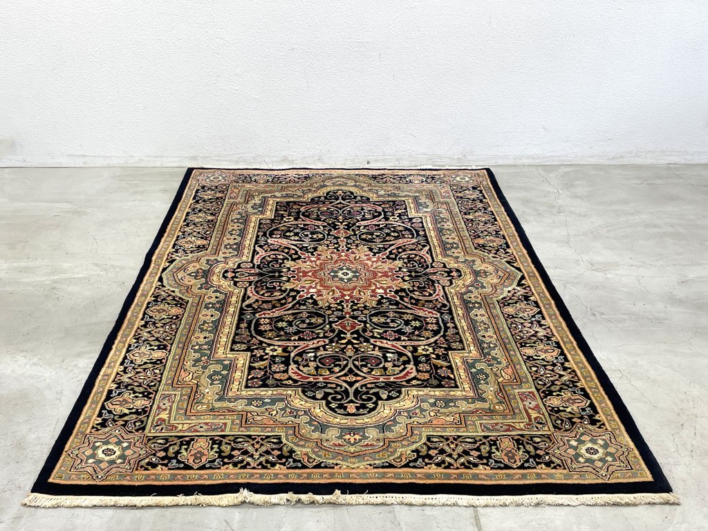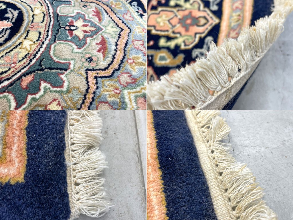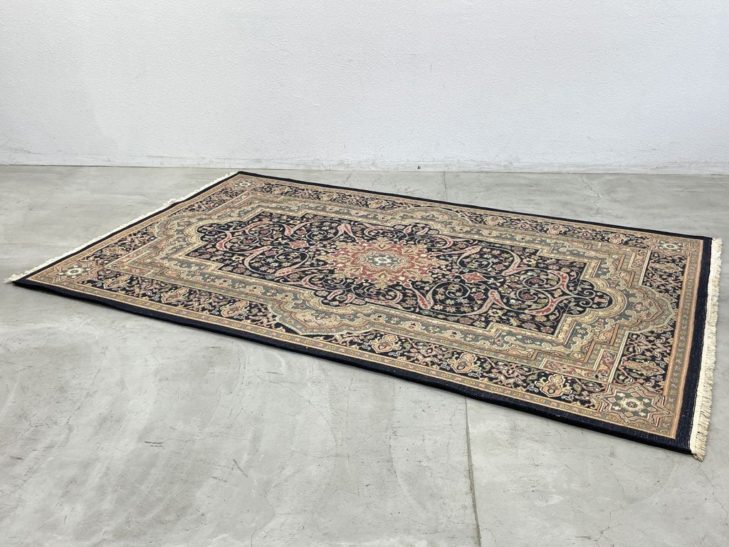 ペルシャ柄 ラグマット ウィルトン織 ウール メダリオン ネイビー系 リビング 寝室 絨毯 カーペット 171cm×272cm 〓