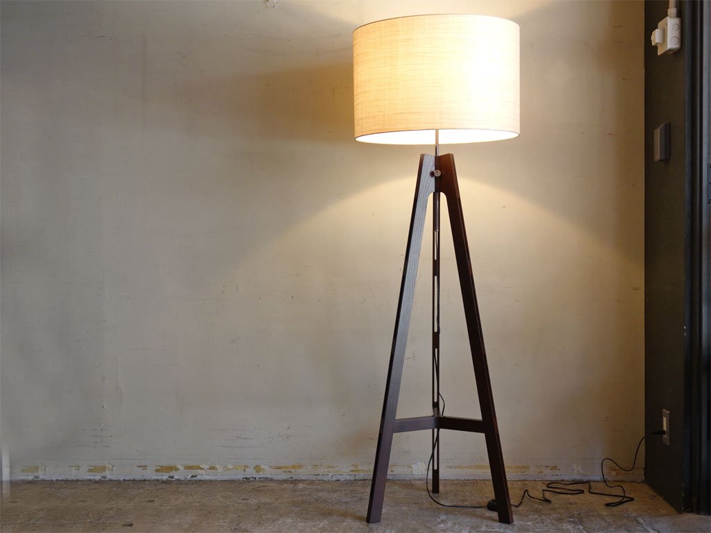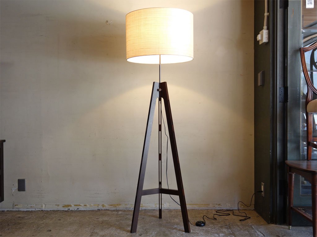 ワイスワイス WISE WISE アキ AKI CM-701 フロアランプ オーク材 ブラウン 麻布シェード 高さ調整可能 展示美品 ■