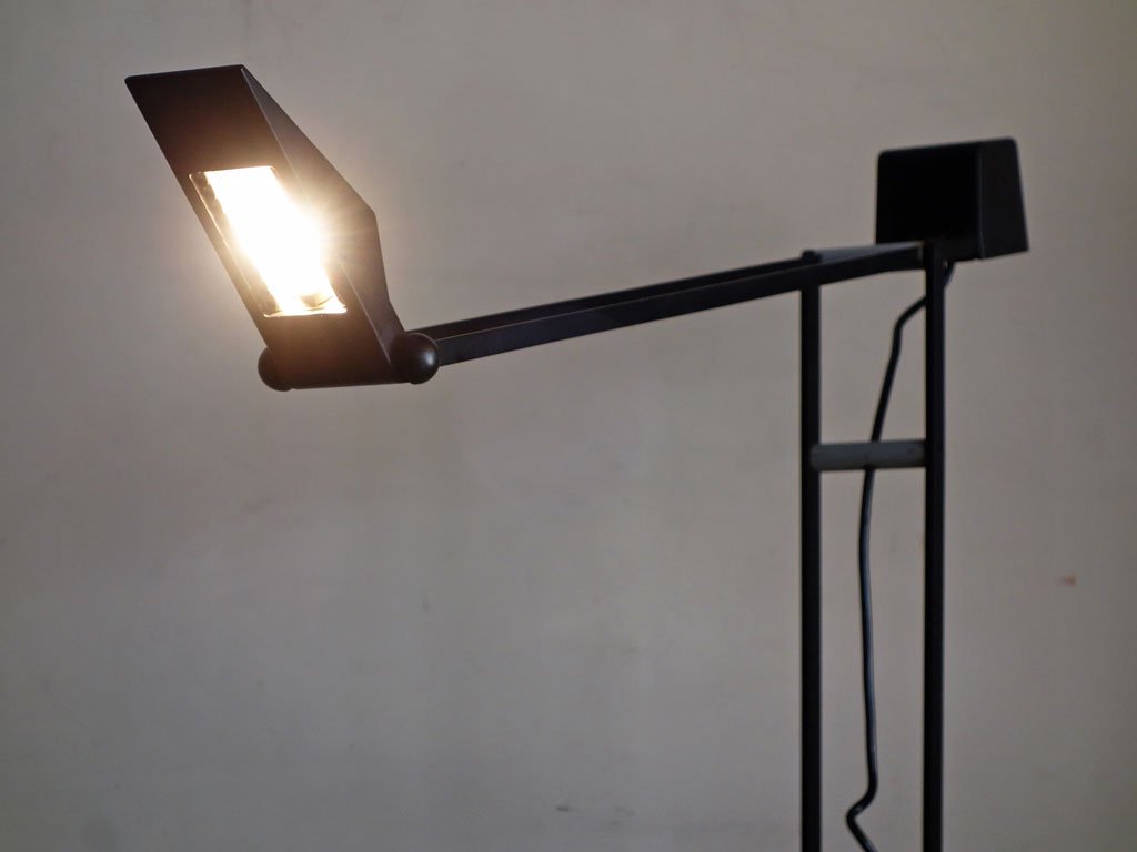 こちらは直線的なフォルムが印象的なビンテージのハロゲンフロアライト。
