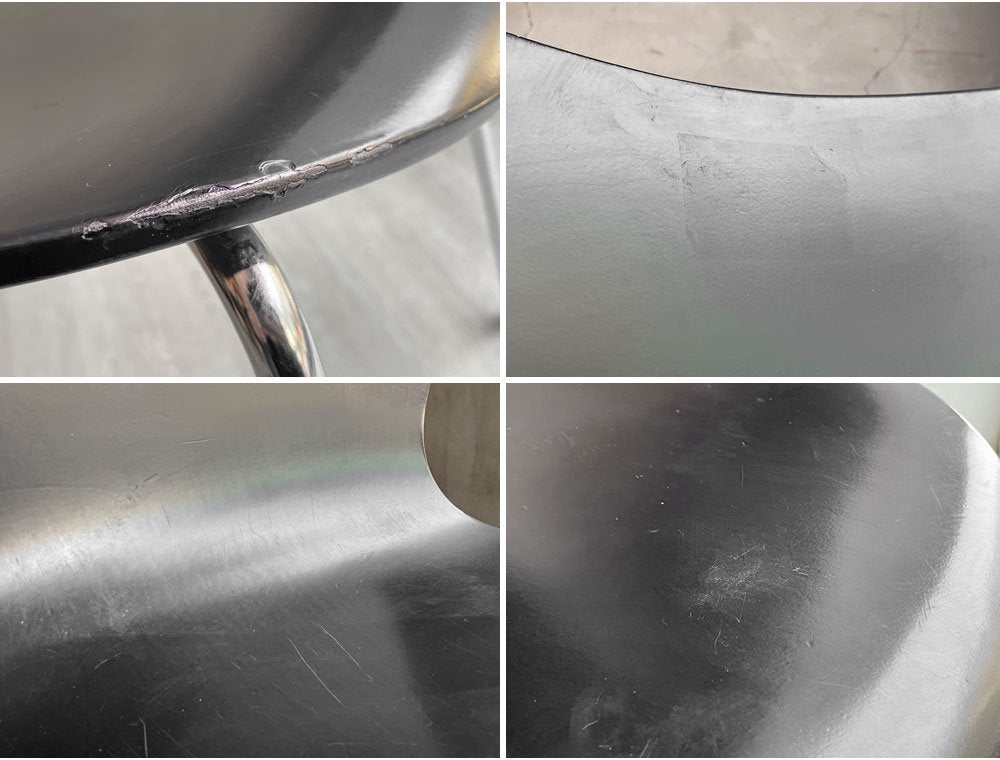 使用に伴い、打痕や擦れ等の小傷、縁部分にはペイントロスを伴うガリ傷ございます。その他脚部にはくすみや錆が見受けられます。ご使用頂く上で問題となるような大きなダメージは無く、これからも実用頂けるコンディションを保っております。