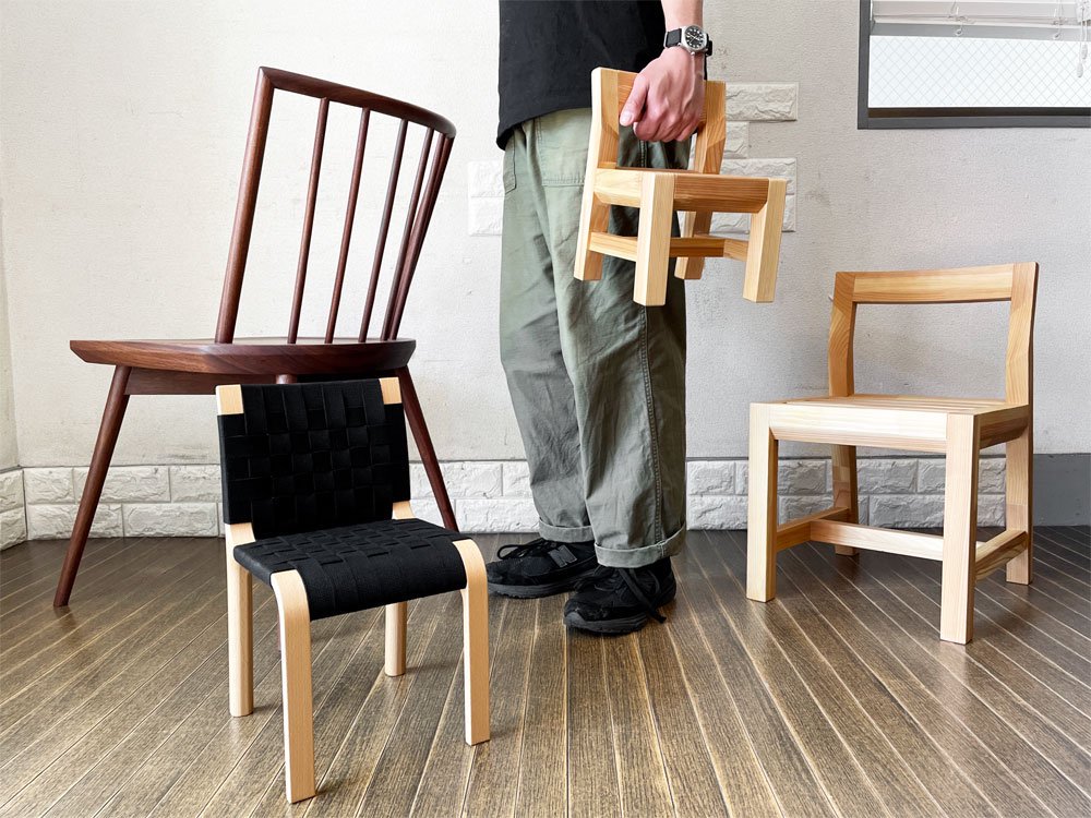 ビーチ材のナチュラルなフレームは天童木工でもおなじみのコマ入れ技法が用いられるなど、小さいながらも手の込んだ仕上がりが魅力の1脚です。