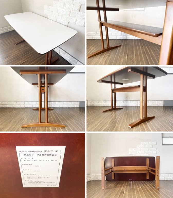 カリモク60+ karimoku60+ カフェテーブル1200 メラミン天板 ウォールナットフレーム W118cm 天板下収納 レトロモダン ミッドセンチュリー 定価¥77,700- ◎