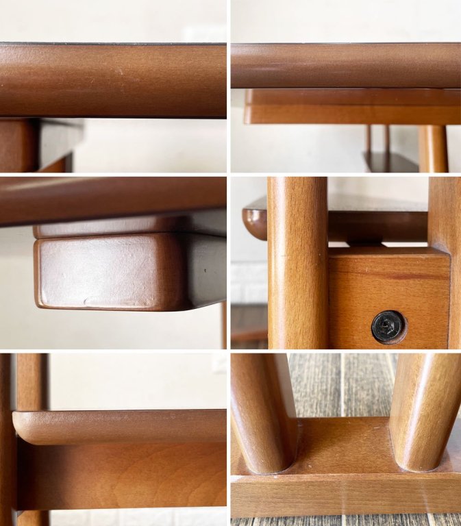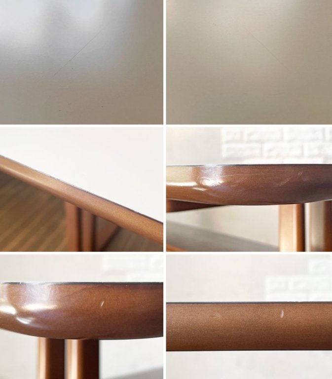 使用に伴う若干の擦れや小傷、打痕、天板縁や脚底部の削れ、取り切れない汚れ等は見受けられますが、比較的使用感は感じられません。ご使用に問題となる目立ったダメージはなく、今後も気持ちよく実用いただけます。