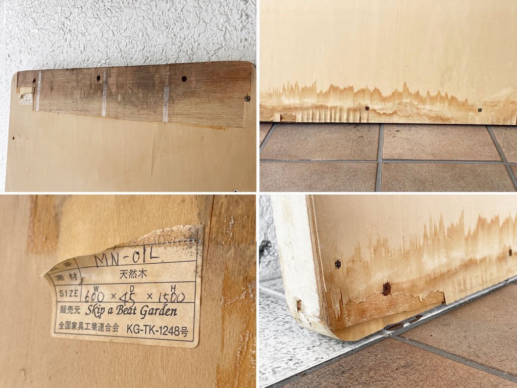 使用に伴いフレームには黒ずみや染みがございますが、商品自体の雰囲気とよく馴染んでおり美観を損ねるものではございません。裏面上部の突板には痛みがありました為当店にてカットしております。また下部には水に濡れた痕や突板の歪み、材の欠けが見られますが使用に支障はございません。以上やや使用感はございますが、これからも安心してご使用頂けるコンディションを保っております。