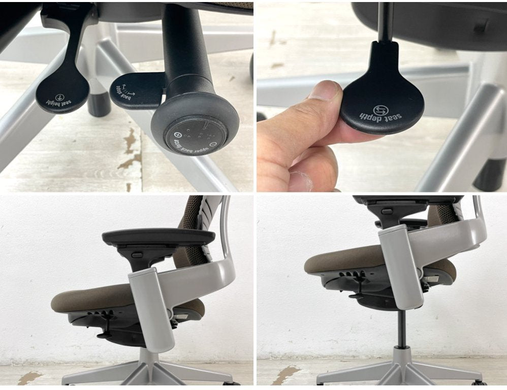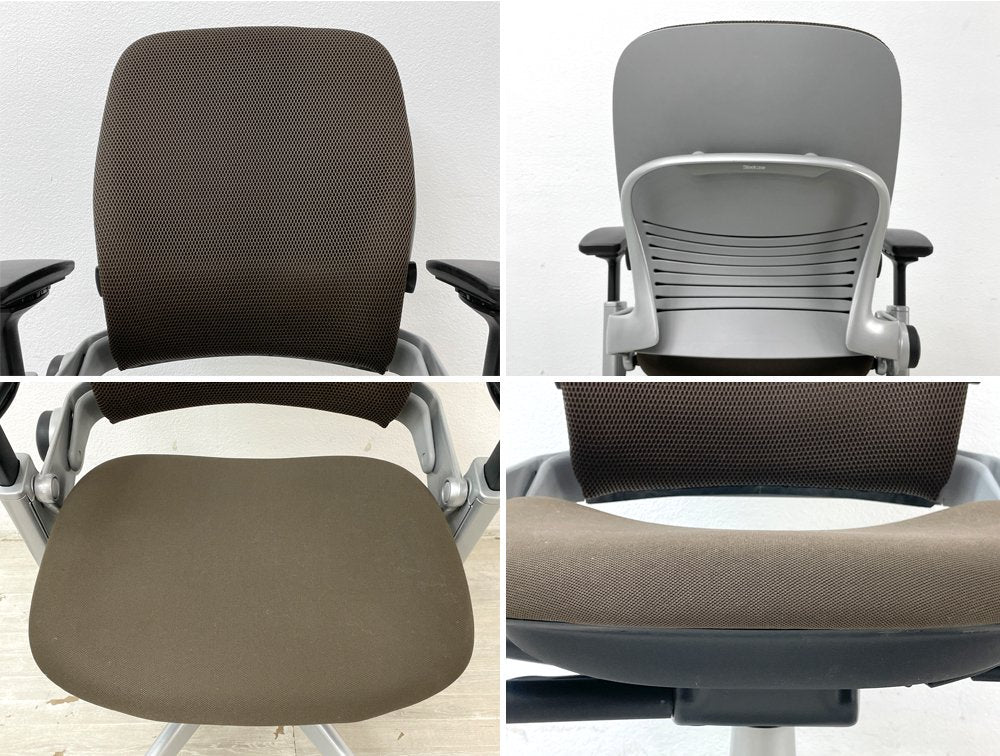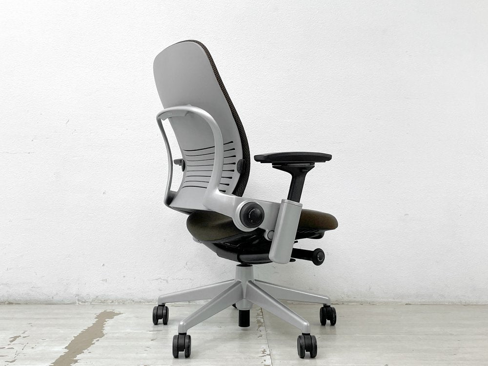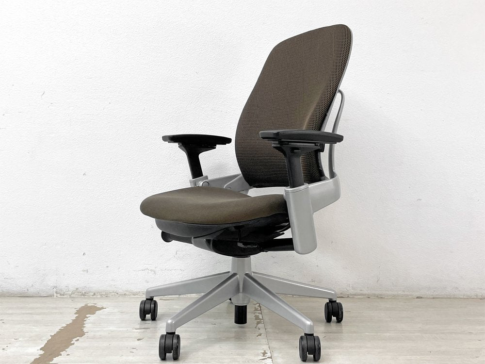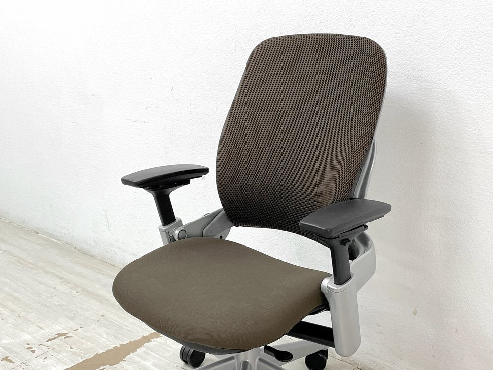 スチールケース Steelcase リープチェア V2 3Dニットタイプ プラチナフレーム ブラウン ランバーサポート 可動肘 高性能チェア ●