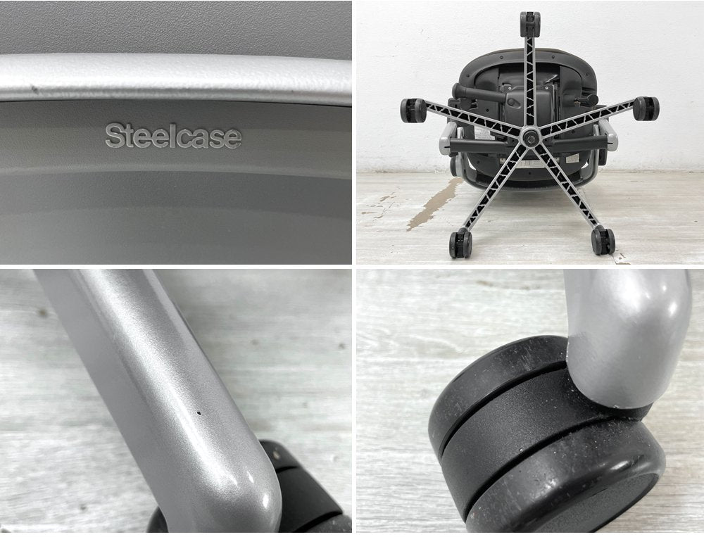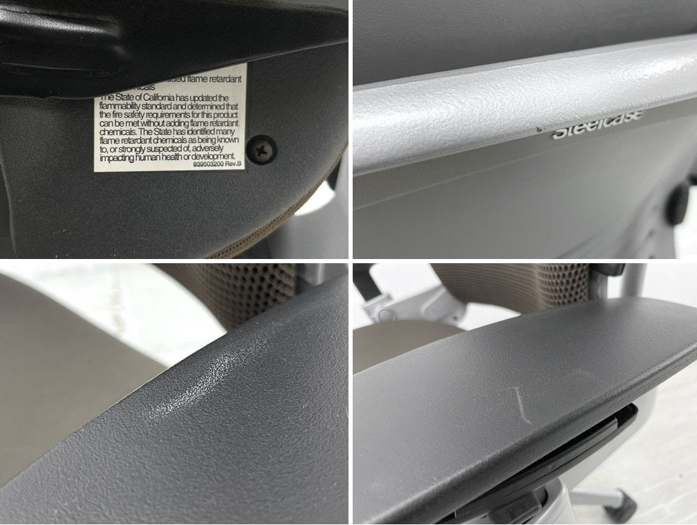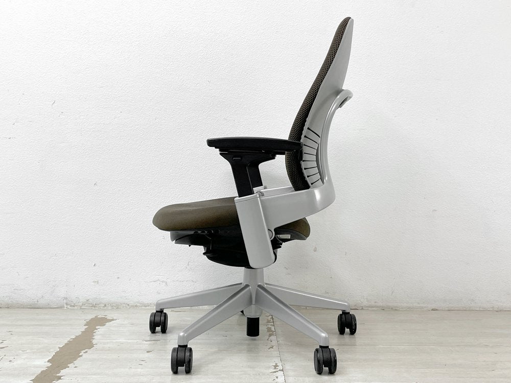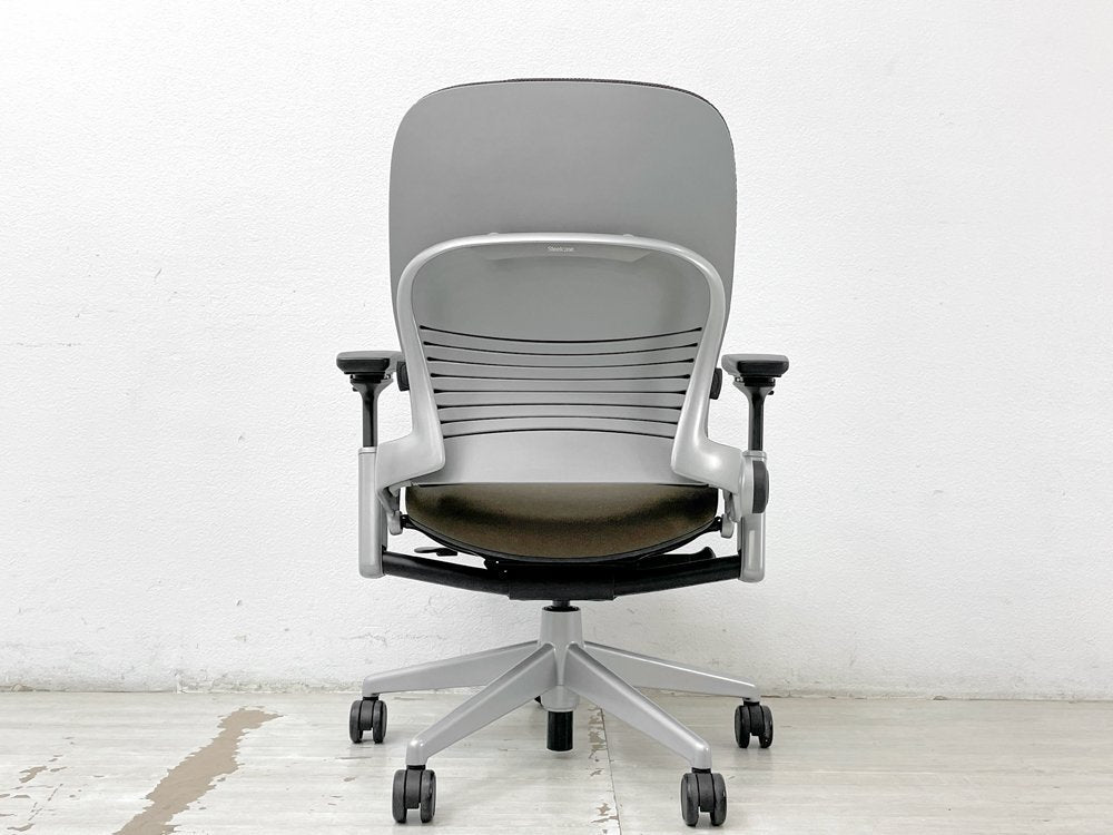 スチールケース Steelcase リープチェア V2 3Dニットタイプ プラチナフレーム ブラウン ランバーサポート 可動肘 高性能チェア ●