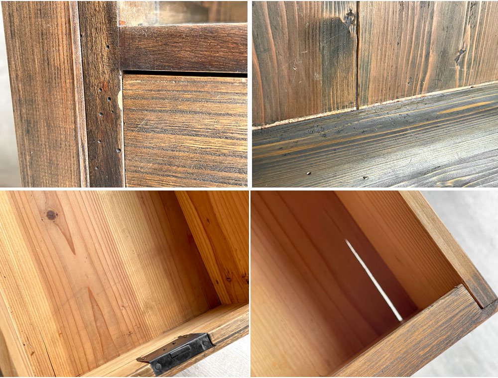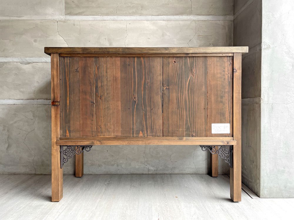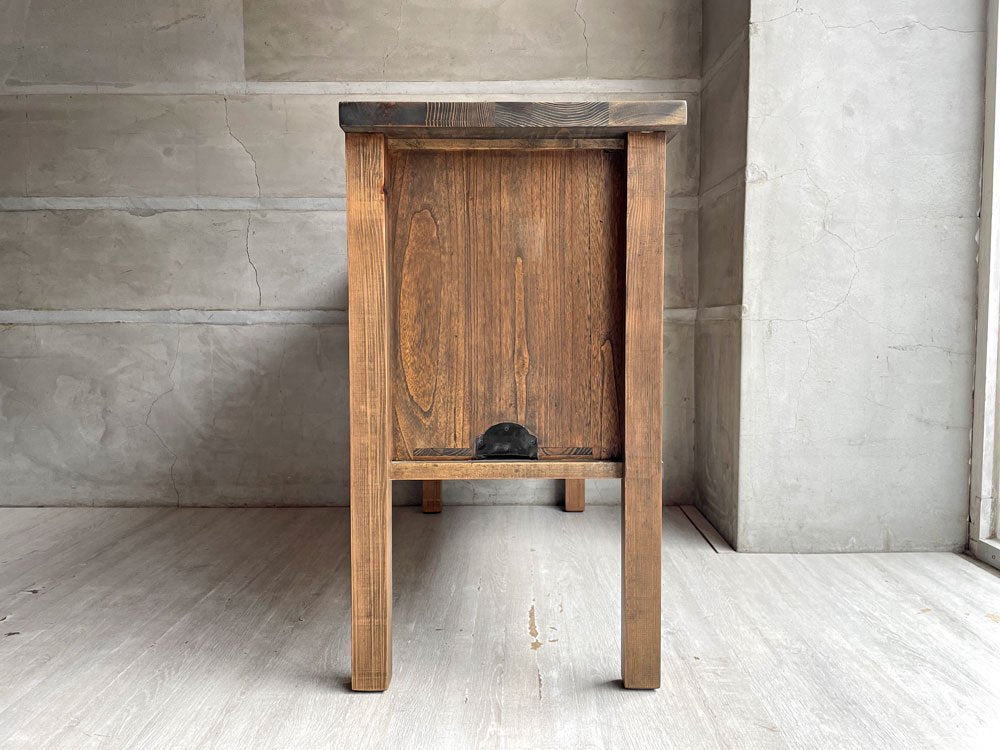 古民家から出た古家具などを1枚1枚板にして洗浄・研磨・再塗装して作られるチェストは、古材ならでは深い味わいが特徴です。