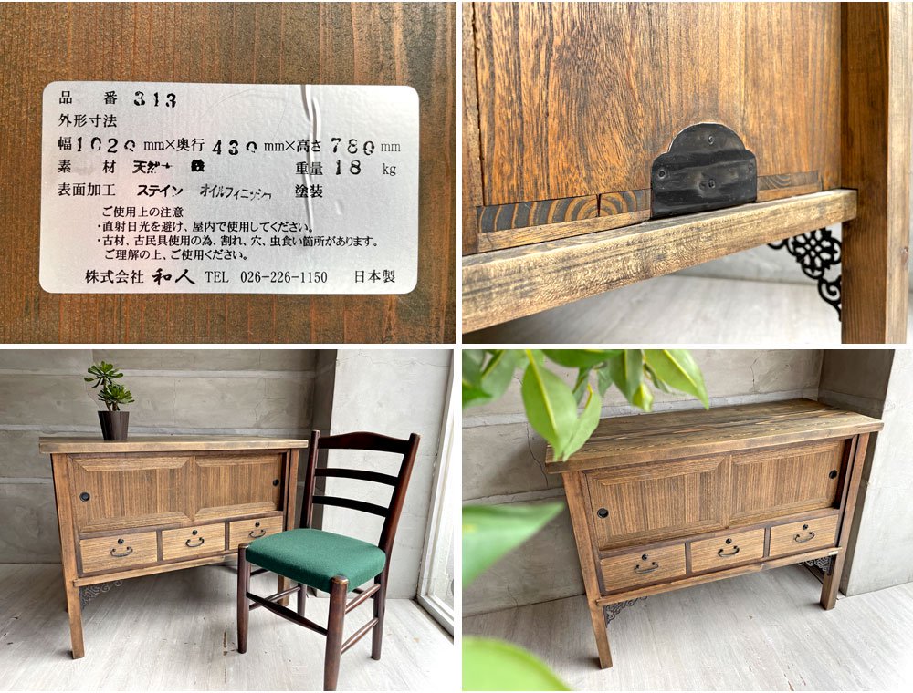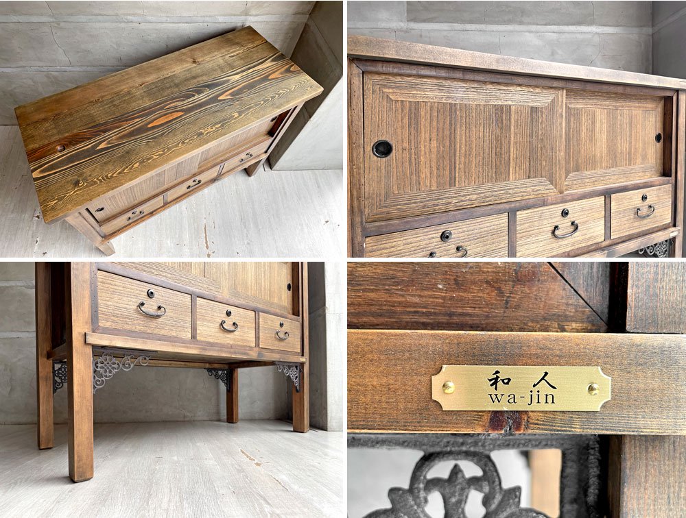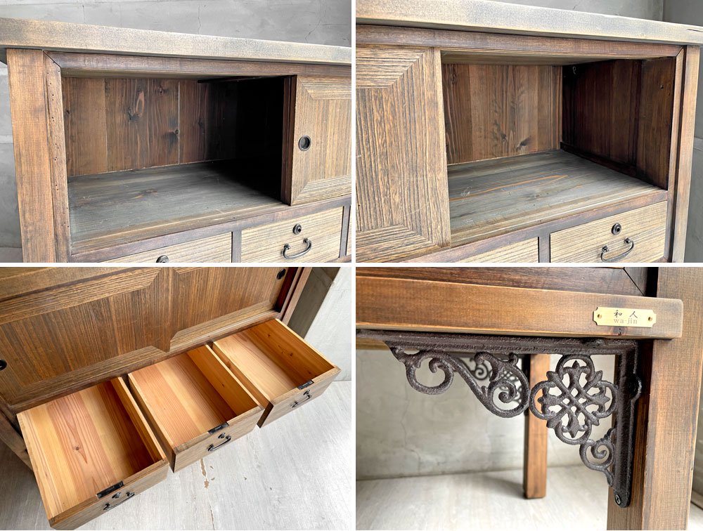 和人 Wajin 和箪笥 チェスト キャビネット 飾り棚 古材 リメイク家具 レトロ 古道具 定価¥77,000- ♪