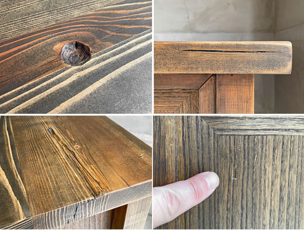こちらは古材をリメイクしたお品物となり、製造時からの節や凹凸、ひび割れがございます。