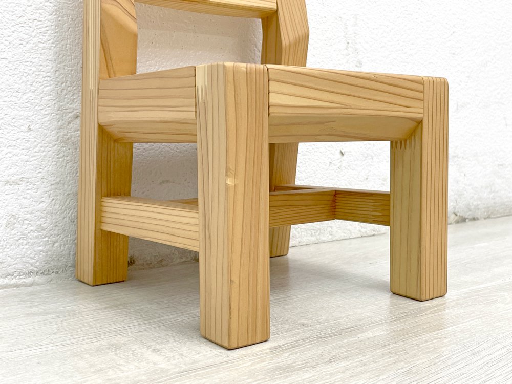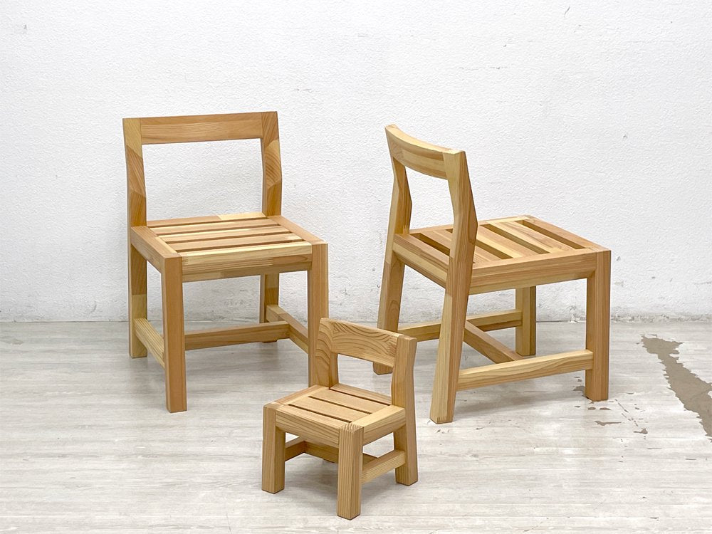 こちらは、細かい木や節、反りのある木そして製造工程から出てくる端材を集成材にして、木を無駄にすることなく造られた環境に配慮した『 サトヤマ SATOYAMA SR-KCH-02 キッズチェア ミニ サイドチェア 』になります。温かみあるナチュラル色の無垢材を使用し、直線を基調に木本来の表情を際立たせたウッドフレーム。お子様用のミニチェアとしては勿論、店舗のディスプレイや小さな観葉植物を飾る花台等、シーンに合わせた様々な使い方が可能です。