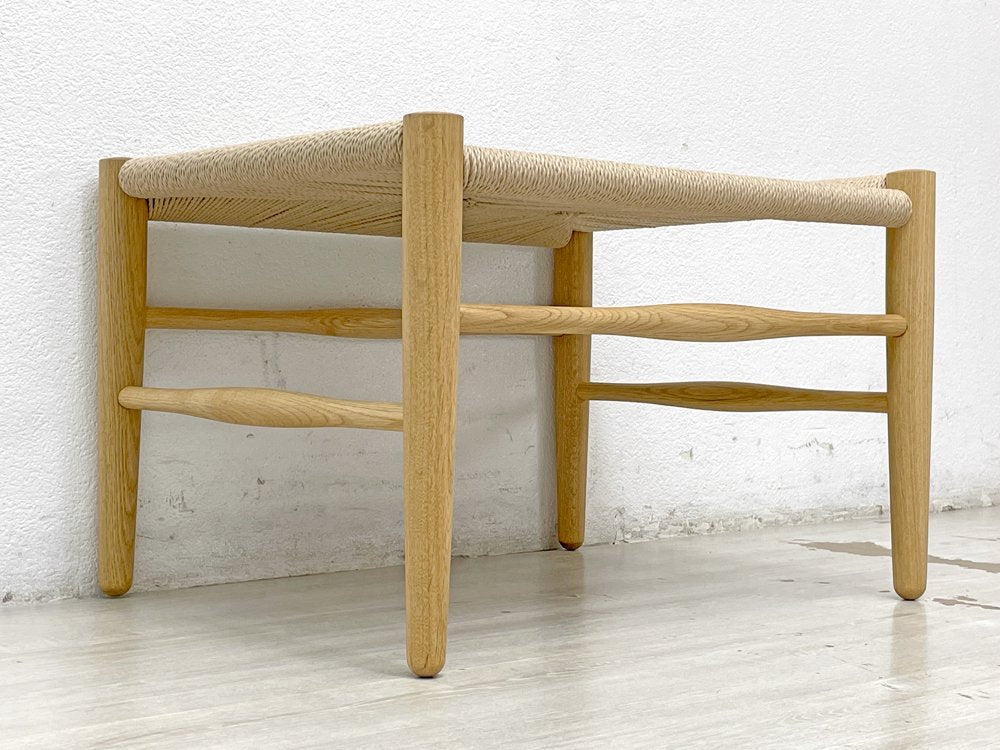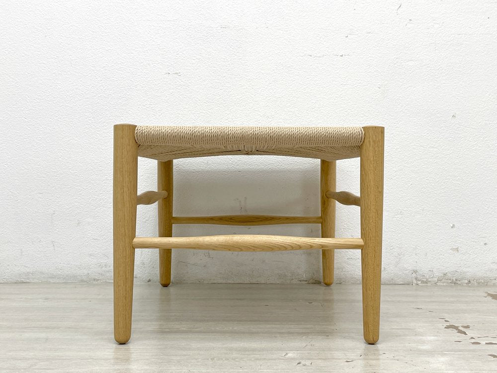 こちらは、中国の明時代のチャイニーズチェアをモチーフにした『 B.Jシリーズ チノ CHINO オットマン フットスツール 』になります。温かみあるナチュラル色のオーク無垢材を使用し、北欧家具のような心地よい丸みに仕上げた細身のウッドフレーム。表面は木の呼吸を止めないオイル仕上げがされ、経年により味わいを増していきます。座面には通気性と耐久性に優れたペーパーコードを編み込み、思わず手で撫でてしまう心地良い肌触りとなっております。