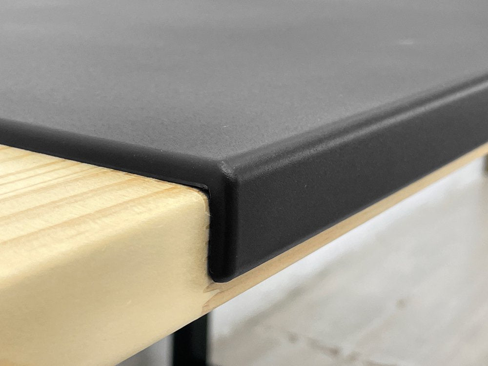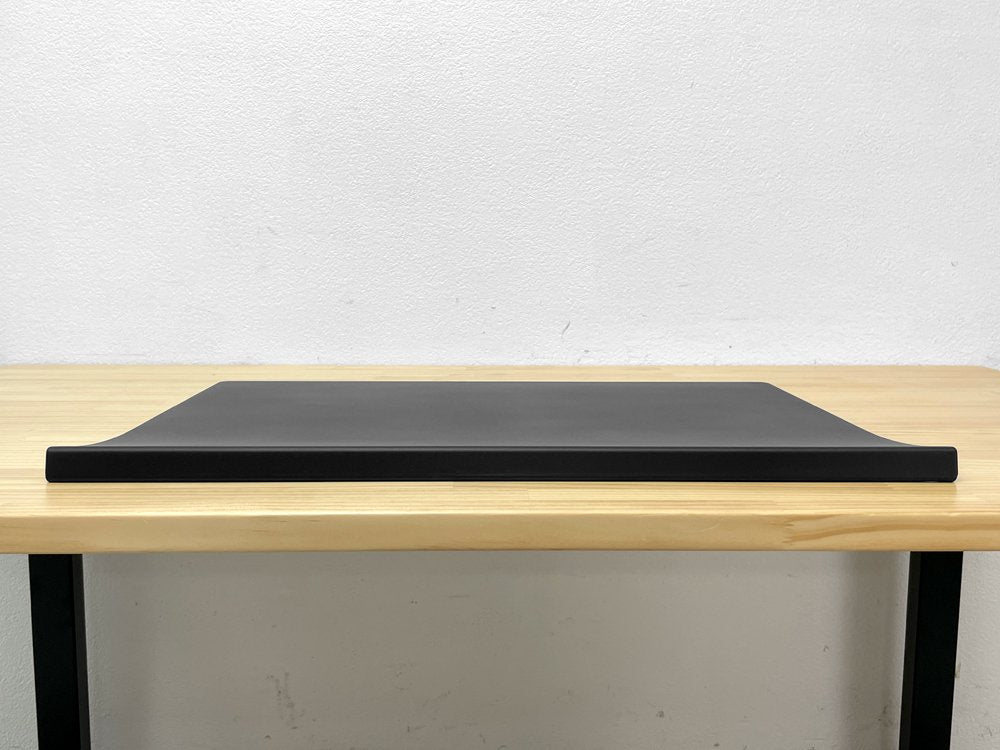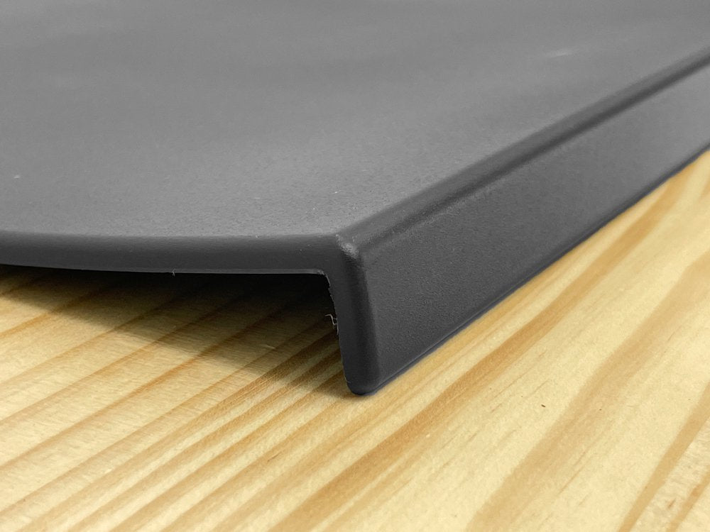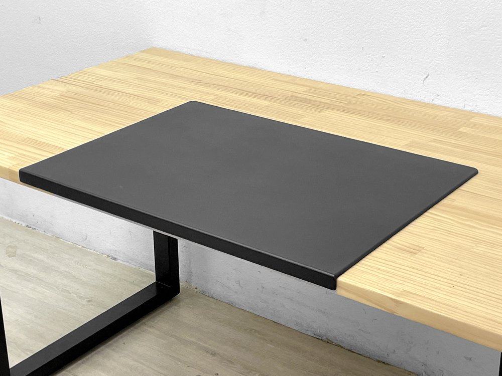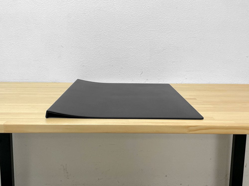長辺の片側が垂直に折られている為、手前デスクエッジの天板にしっくりと添い、使用時のズレを抑える安定感がございます。