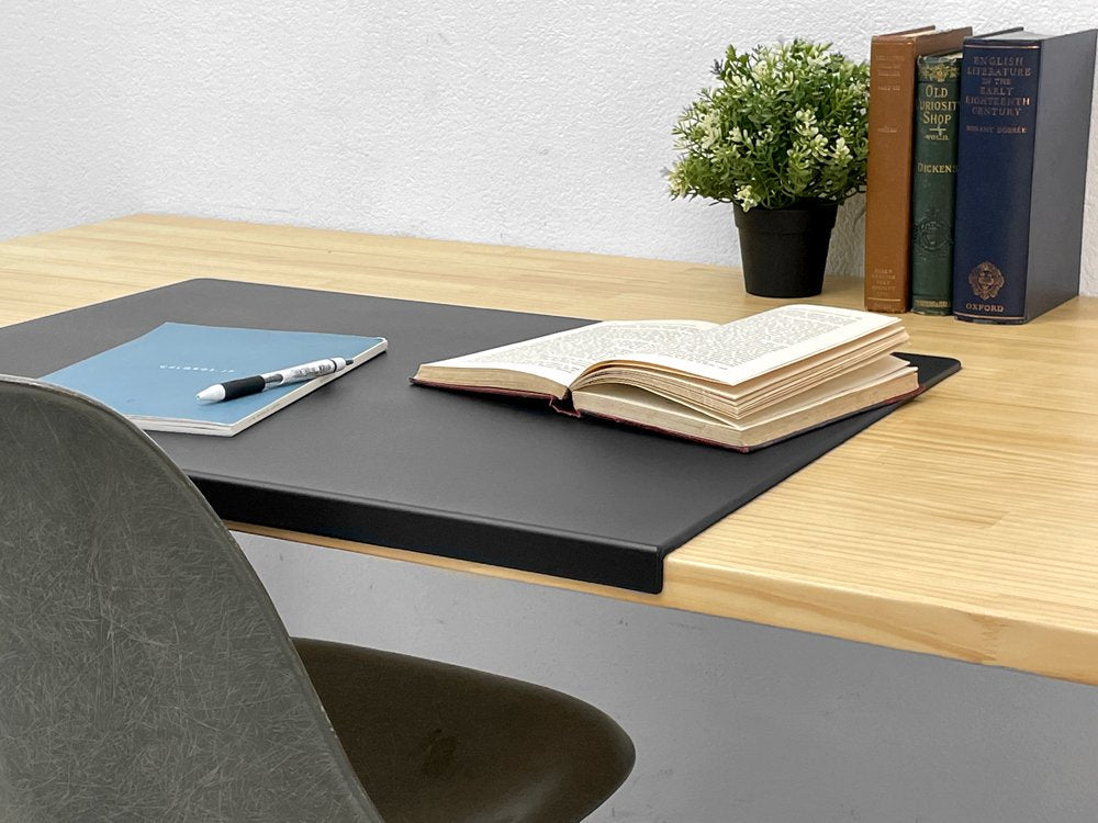 こちらは快適なデスクワークを提供するポリウレタン製のデスクマット。さらさらとした滑らかな手触りで、PCのキーボード作業やマウスの反応も◎!ちょっとした書き物にもペンがスムーズに走ります。