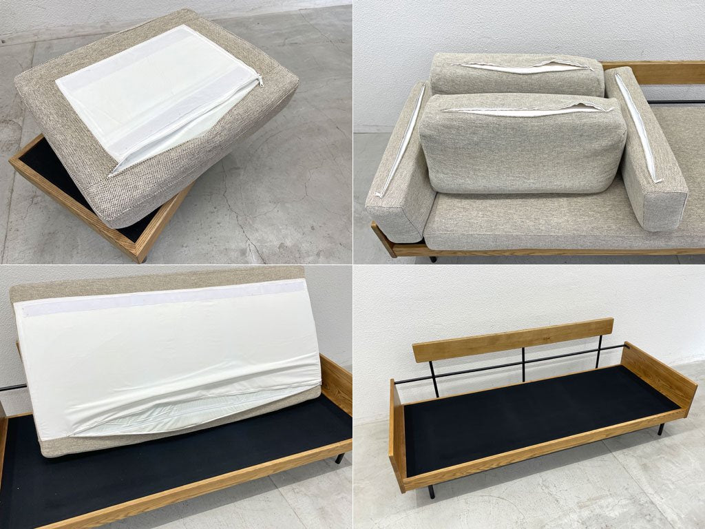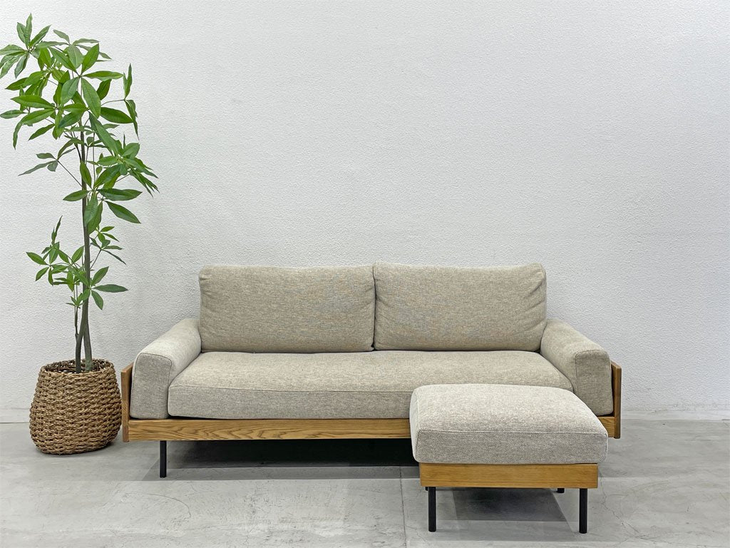 アッシュ材フレームにアイアンのレッグを組み合わせた“TREL(トレル)”シリーズの3シーターソファ+オットマンです。