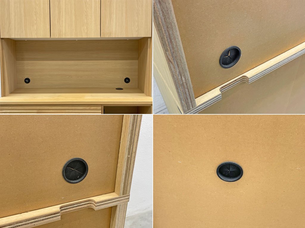 家電収納棚ですので配線を逃がすスペース、配線穴を設けています。すっきりとした収納が可能です。