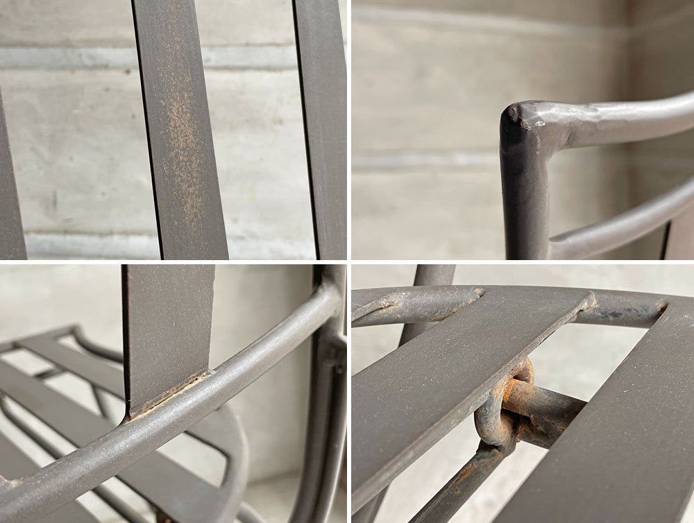 こちらは屋外で使用されていたと思われるお品物です。全体的に若干の変色や表面のザラつき、ペイントロスや軽微な錆が全体的に見受けられます。その他ご使用頂く上で問題となる様なダメージは無く、これからも実用頂けるコンディションを保っております。