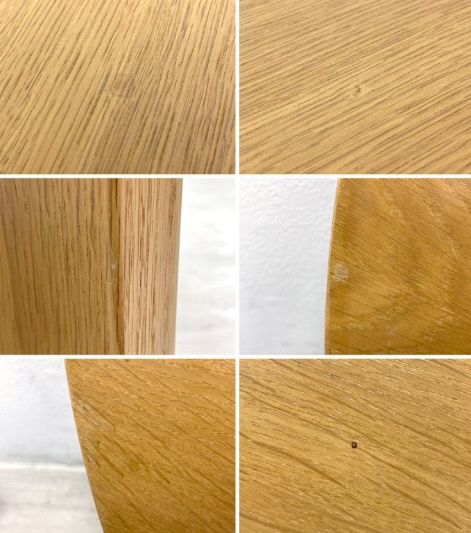 こちらのお品物は専門業者にて天板の裏表と脚部全体をサンディング後に改めて塗装を施したリペア品です。天板のエッジに小さな突板の剥がれ、脚部に細かな打痕が見受けられますが、著しく目立つ様なダメージは無く、使用感の無い大変良好なコンディションを保っております。