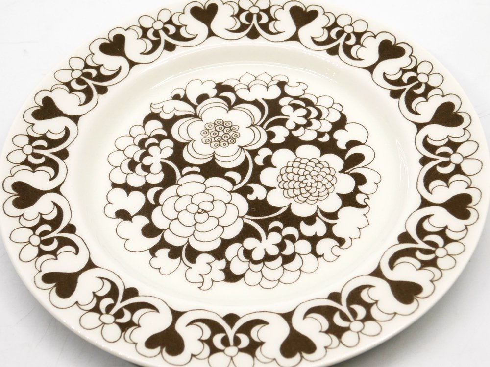 アラビア ARABIA ガーデニア Gardenia プレート Φ17cm ブラウン ゴラン・バック エステリ・トムラフィンランド ビンテージ 北欧食器 希少 ●