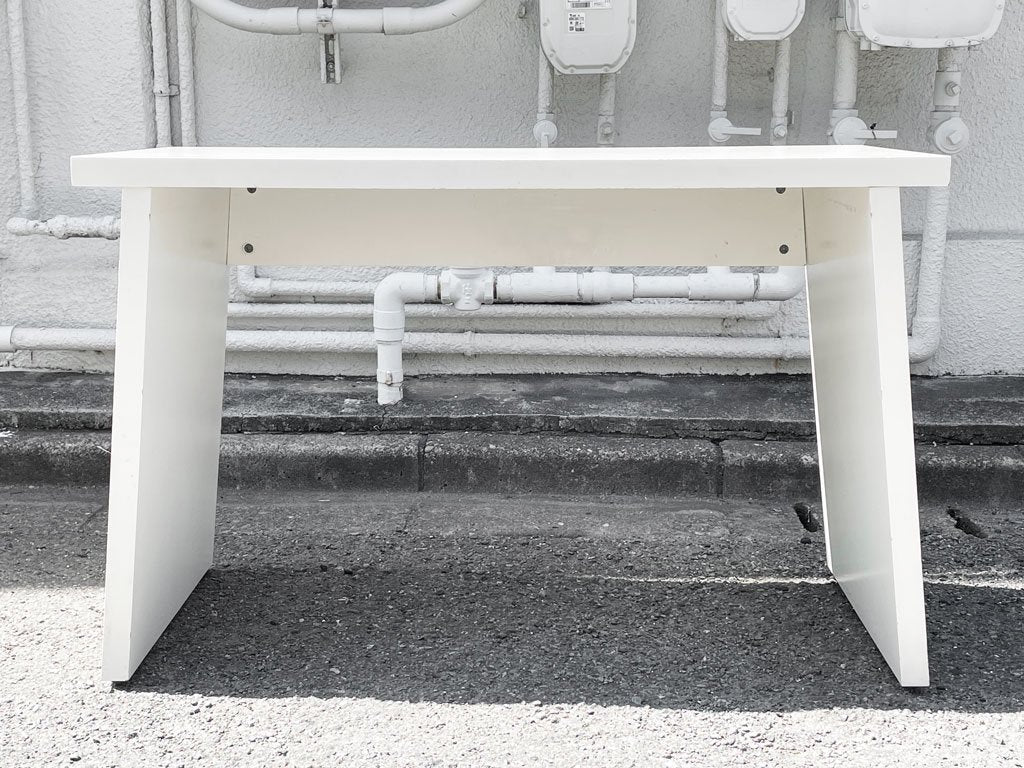 全体がホワイト一色で統一された1点。緩くハの字に開いた脚がシンプルな中にもアクセントを加えます。