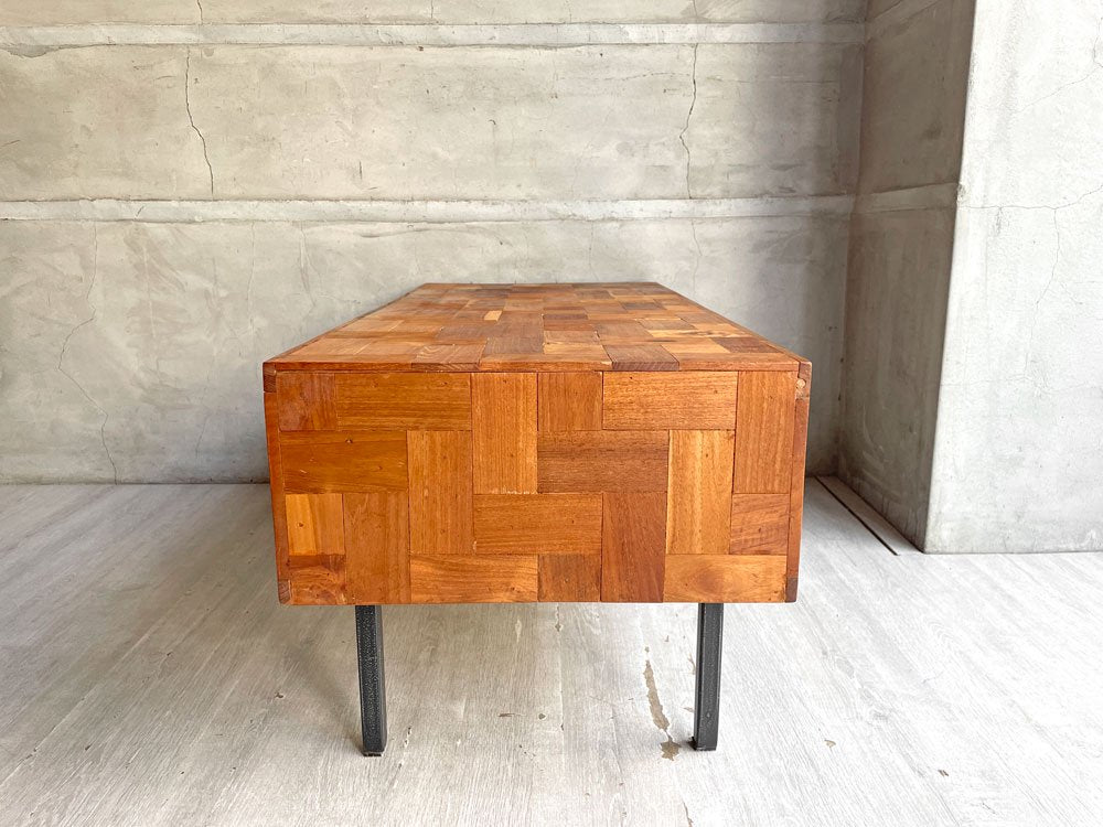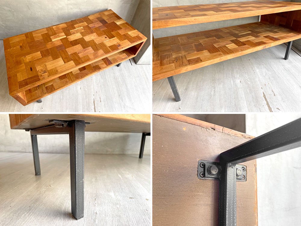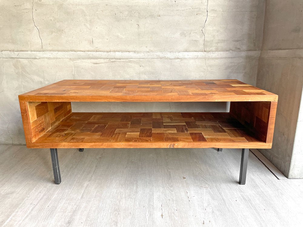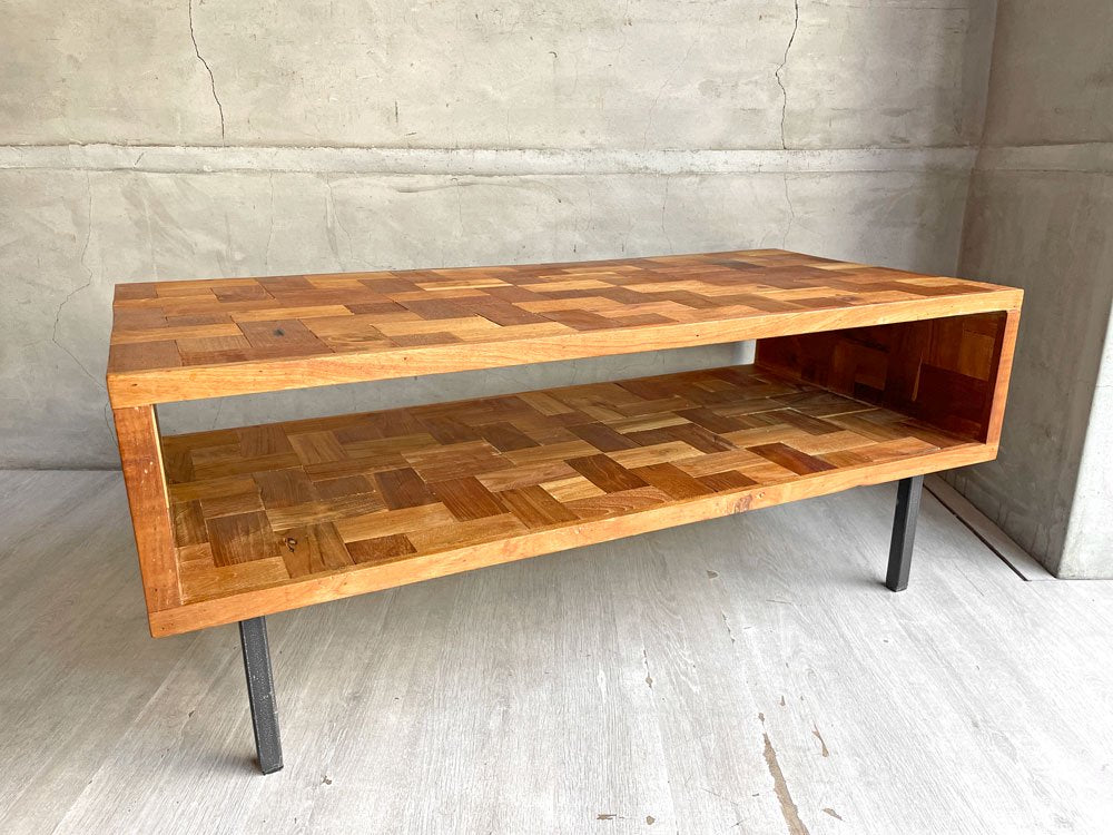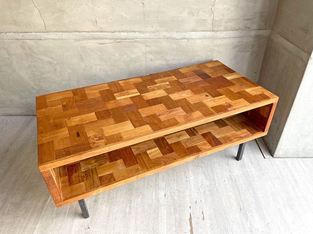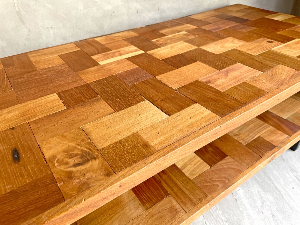 様々な色に経年変化した温かみのあるチーク古材をタイル状に並べ、色味の違いを楽しめる一台。