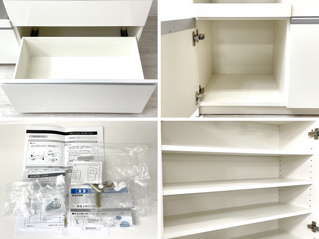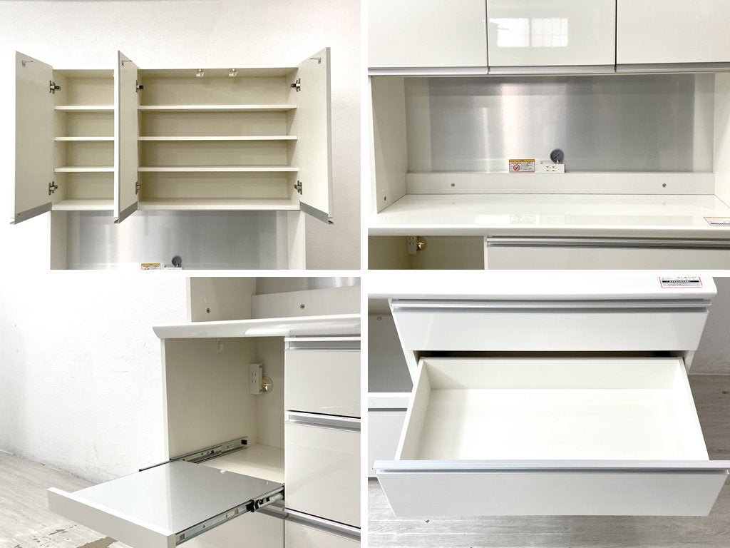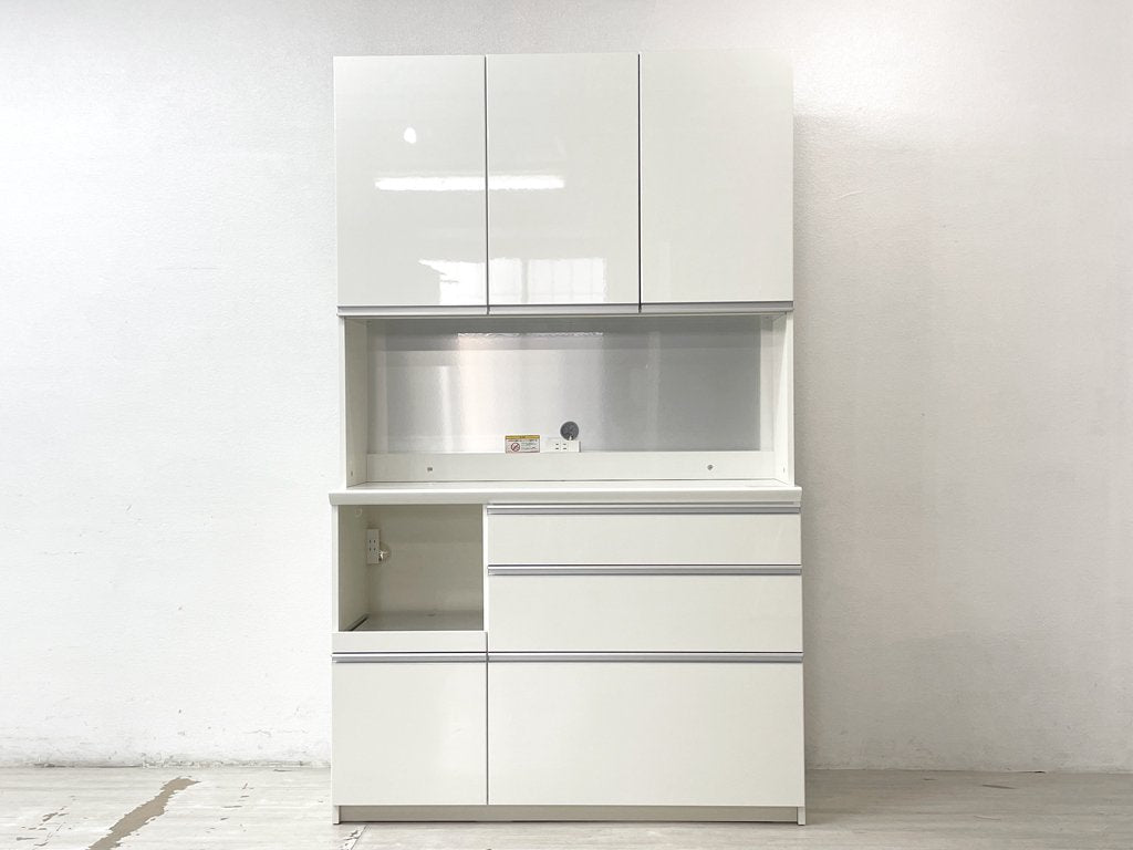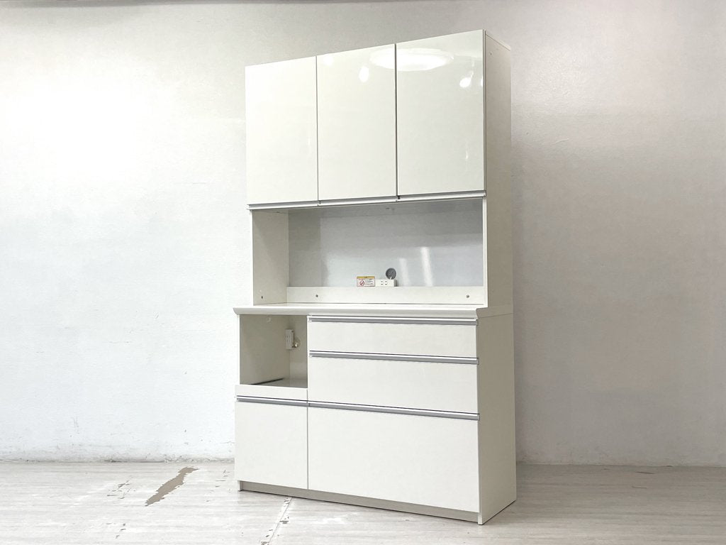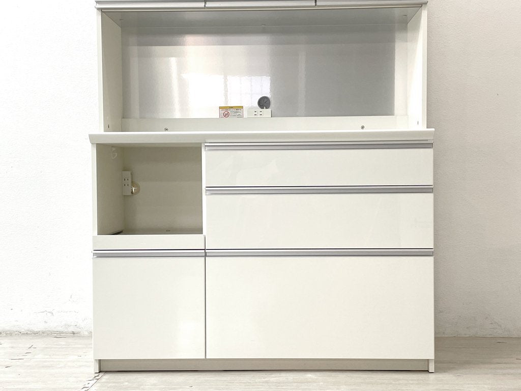 パモウナ Pamouna KJシリーズ カップボード W120cm パールホワイト 食器棚 ソフトクローズ ダイヤモンドハイグロス シンプルモダン IDC大塚家具取り扱い 定価171,600円 ●