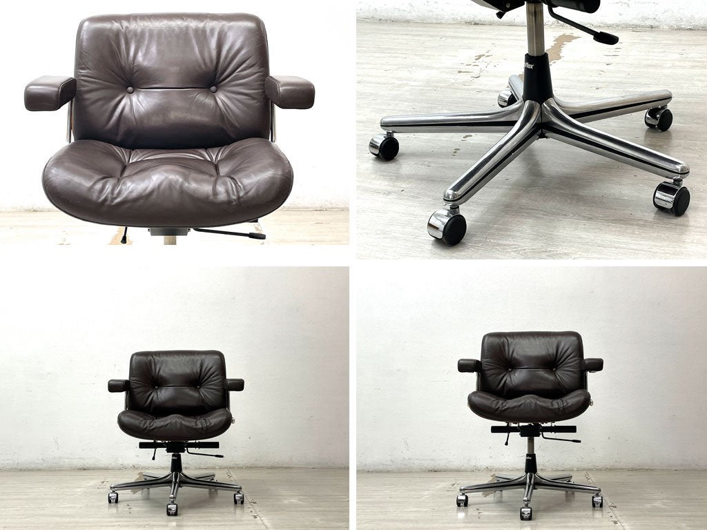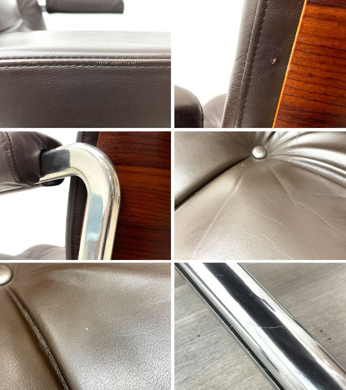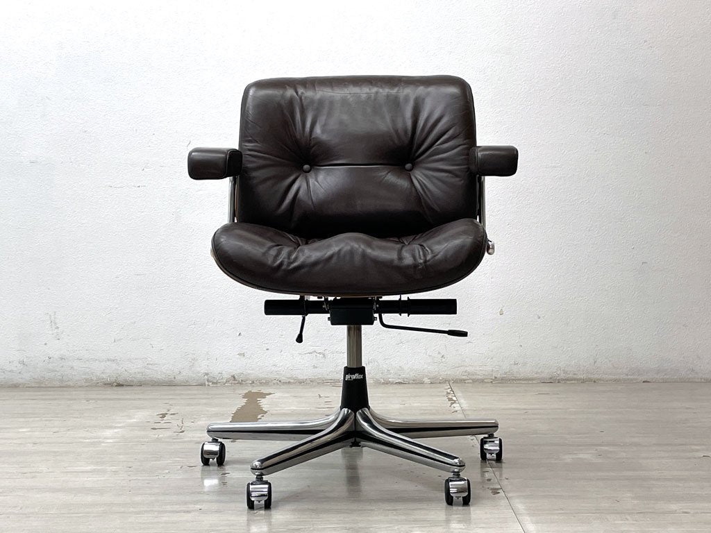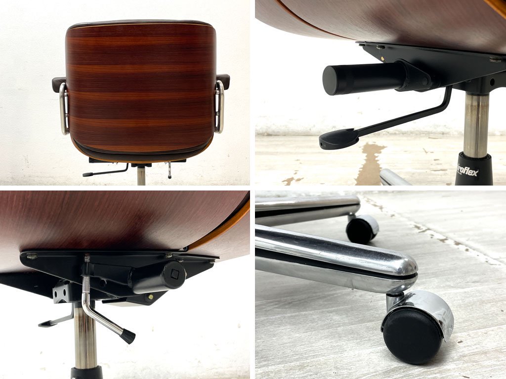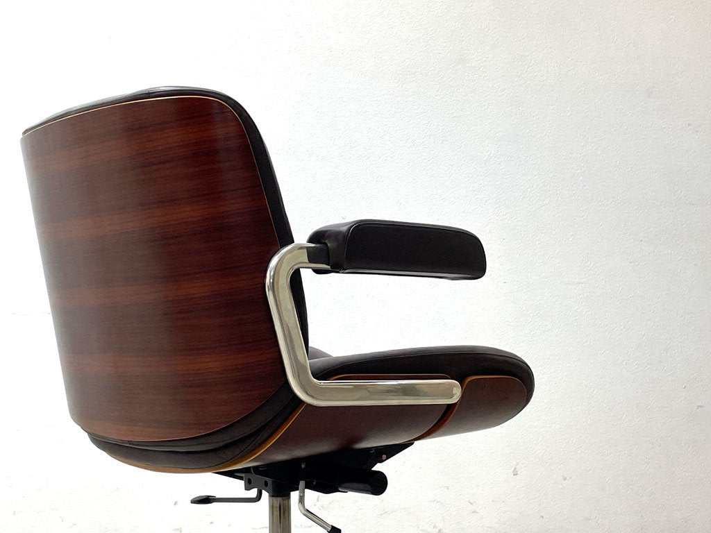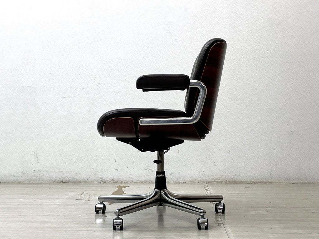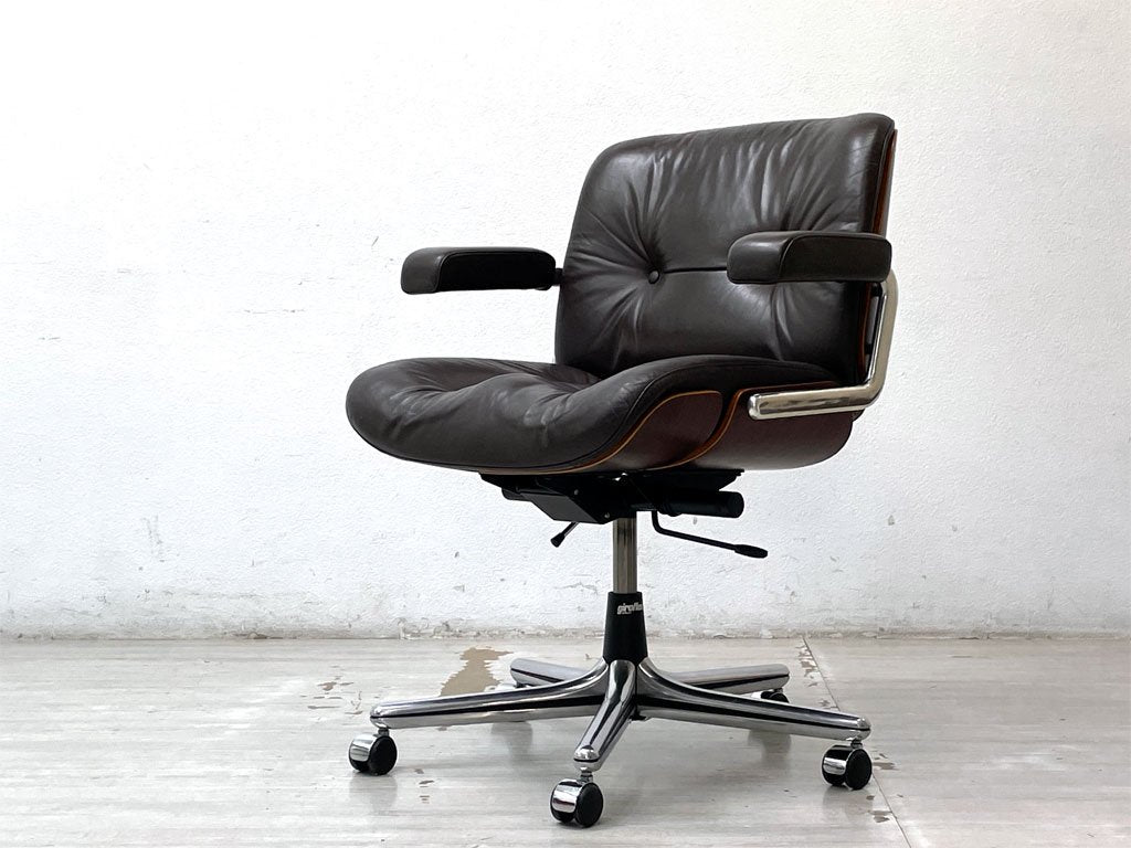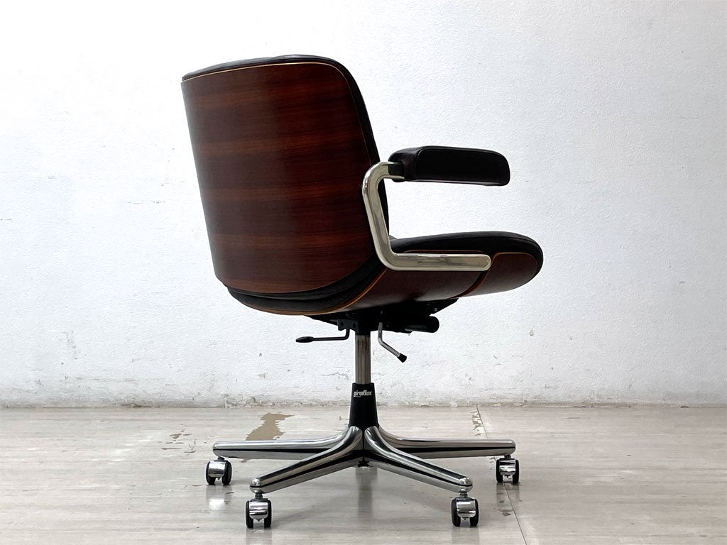 ジロフレックス giroflex パサール Pasal デスクチェア ローバック アームチェア レザー 本革 プライウッド ローズウッド スイス ミッドセンチュリーデザイン ●