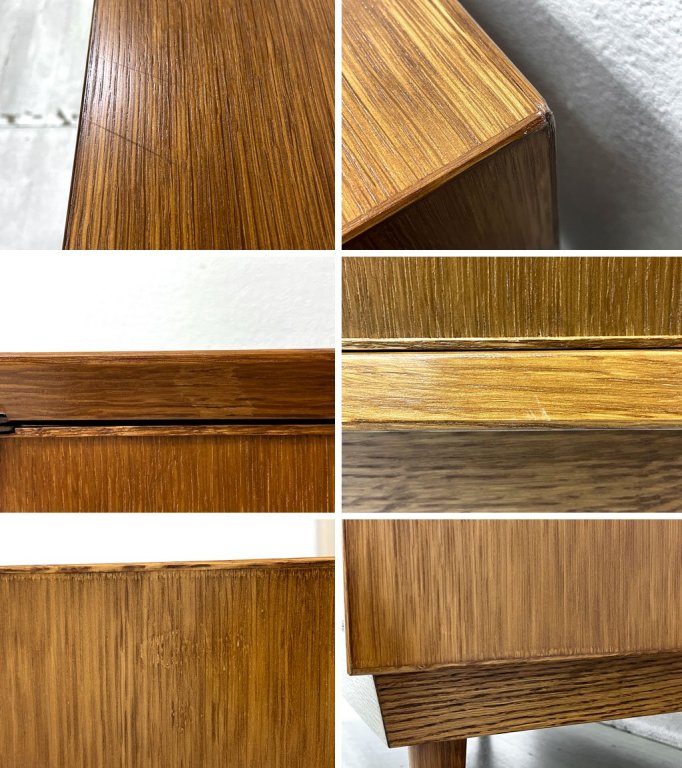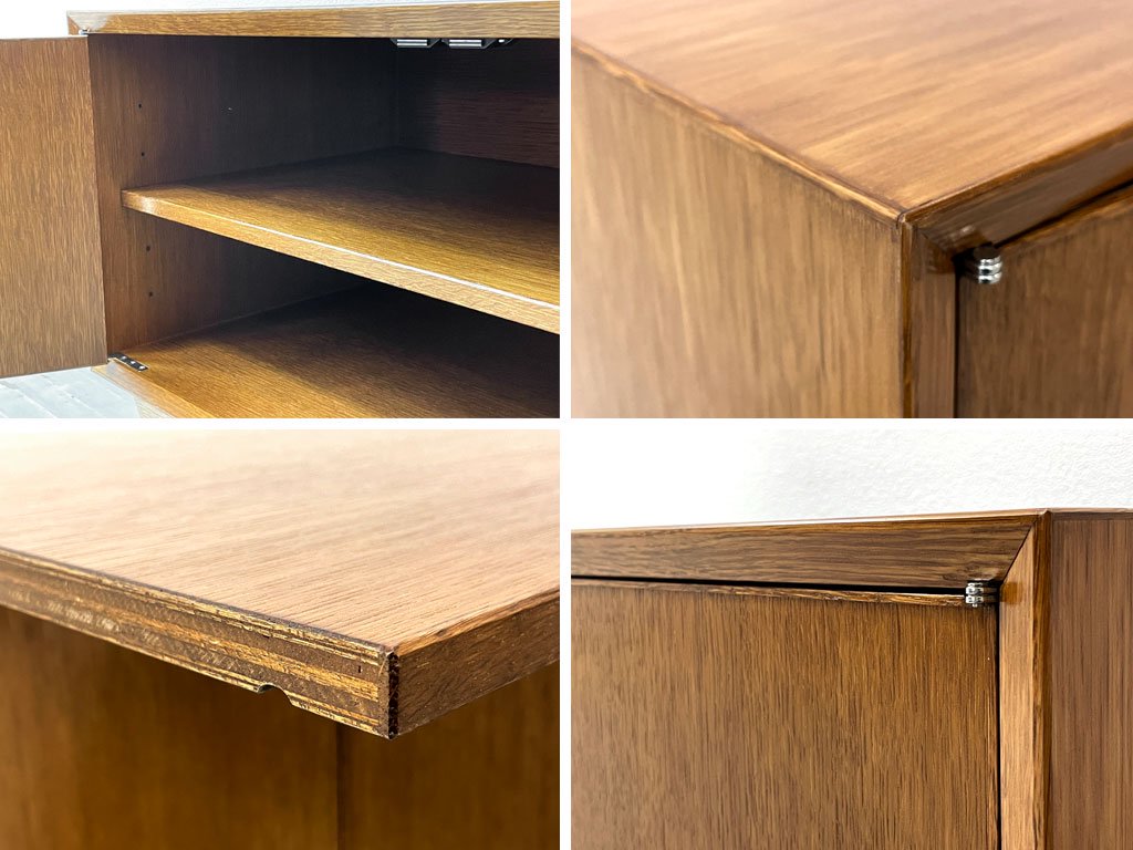 棚板も単なる合板では無く色味と質感の良い木材をバインディング、表に見える木口には4ミリと厚手の板材を使用するなどダメージの出やすい・見えやすい箇所への対策をしっかりと立てている事が分かります。