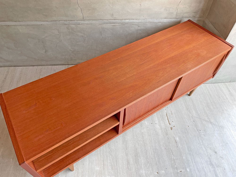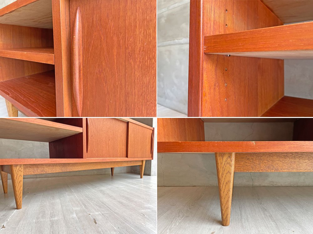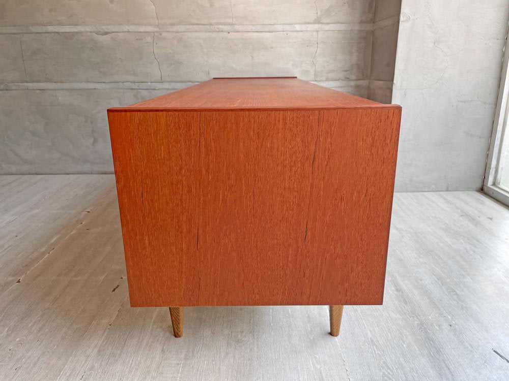 本体にはチーク材、脚部にはオーク材を使用したシンプルなシルエットの一台。余分な装飾も無く、自然木の美しく温かみ溢れる風合いが引き立つ北欧家具を彷彿とさせるデザインです。