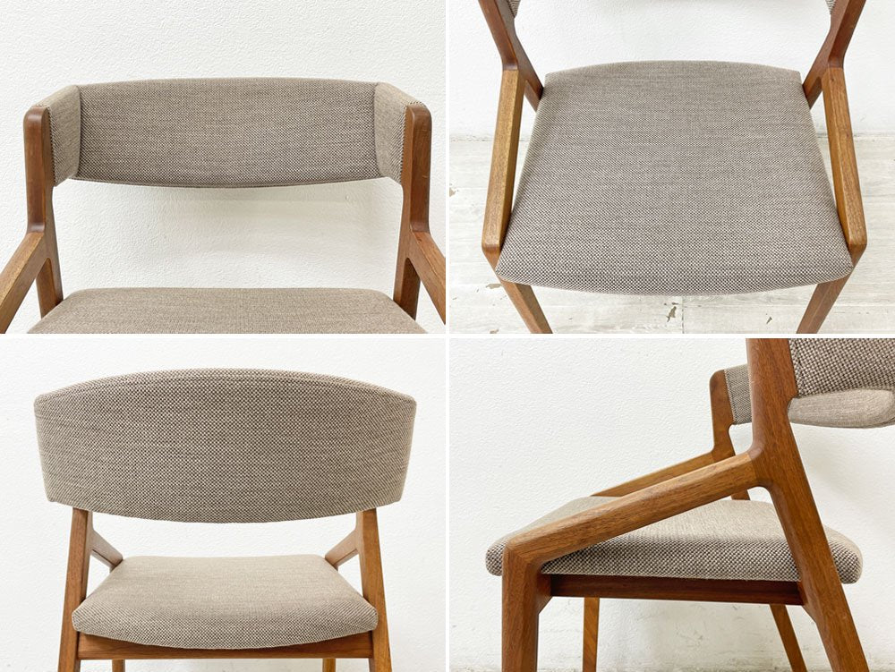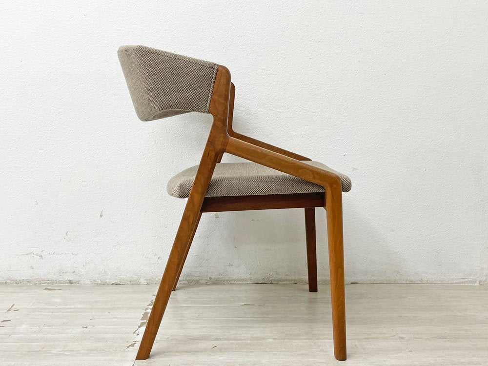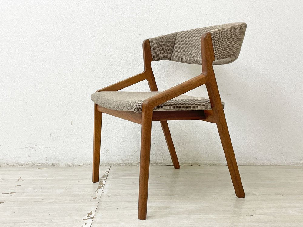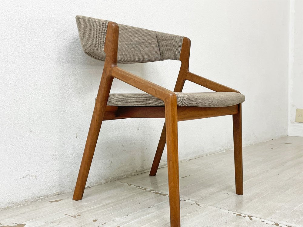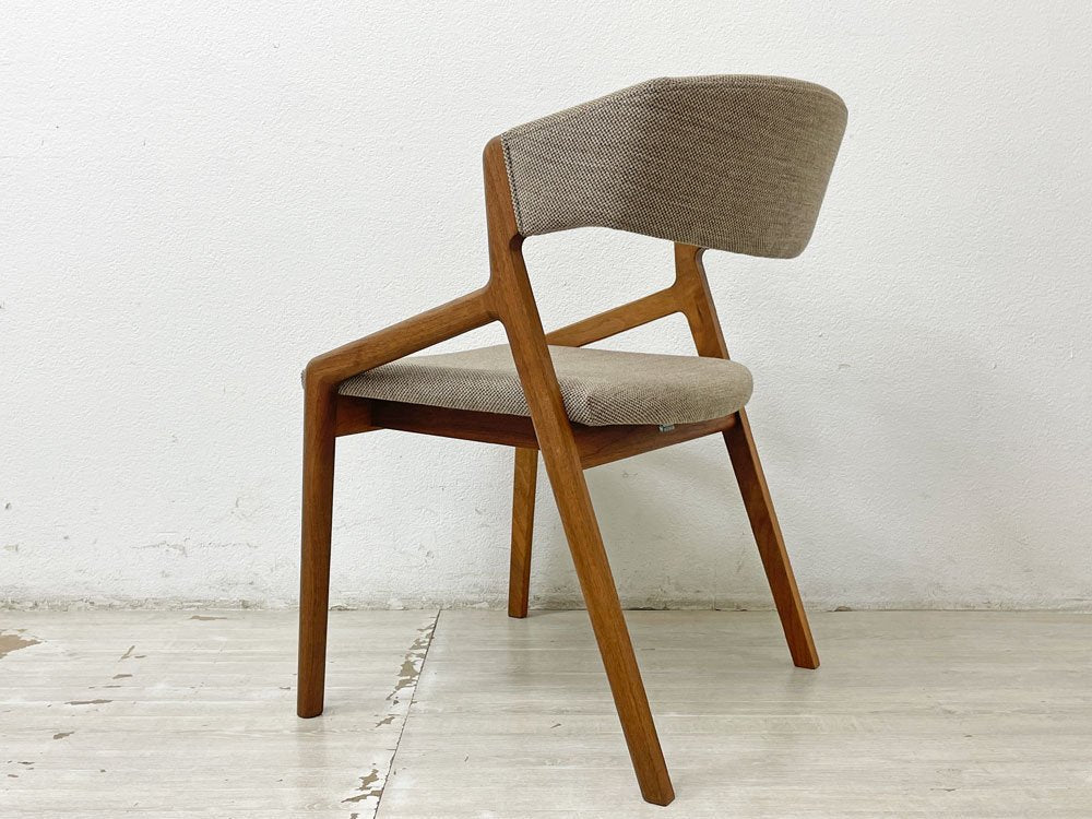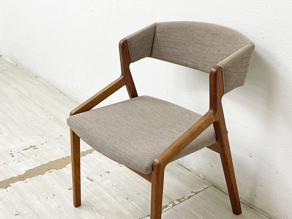 数種類の樹種と張地から、高級感のあるウォールナット無垢材フレームと心地よい手触りのウール混ファブリックを組み合わせた一脚です。