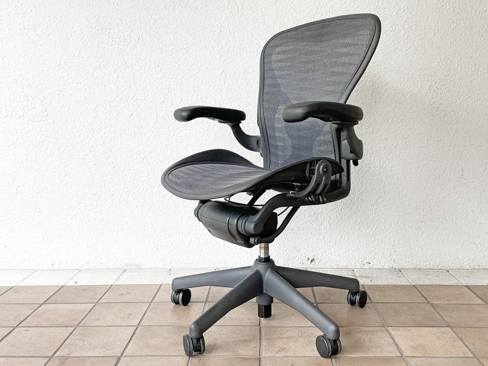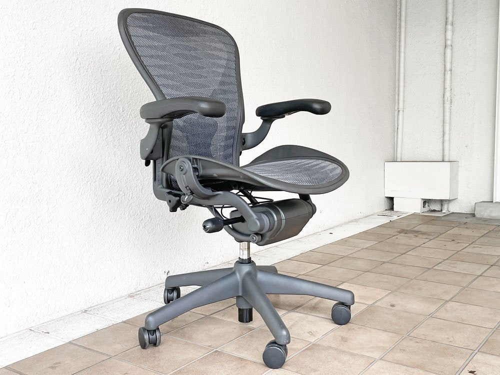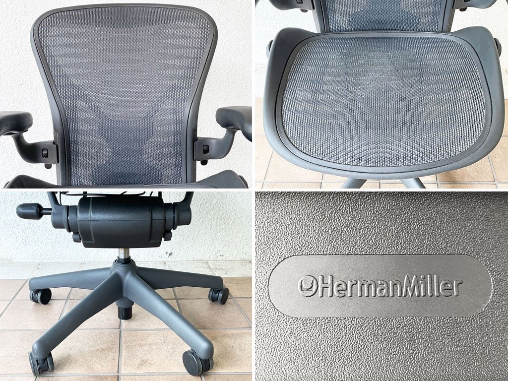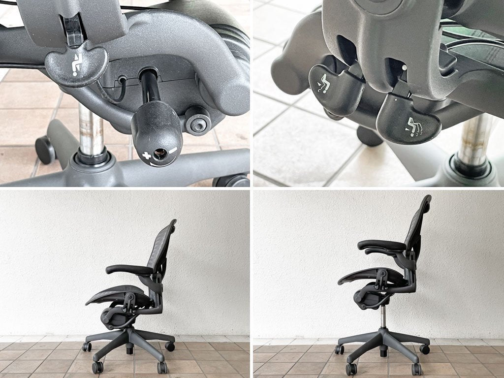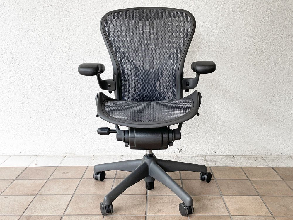 ハーマンミラー Herman Miller アーロンチェア Bサイズ ポスチャーフィット タキシードブラック グラファイトベース デスクチェア フル装備 ◇