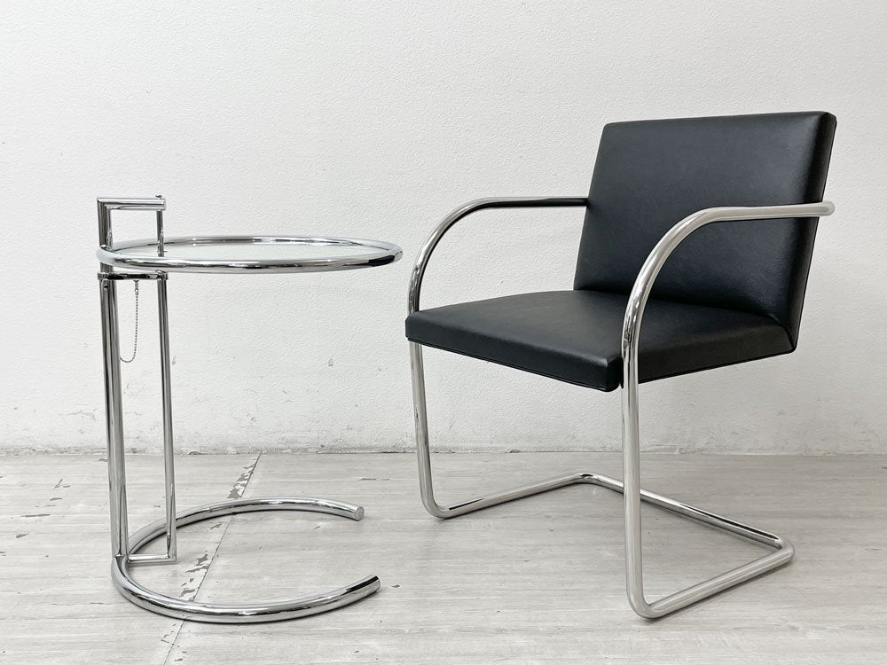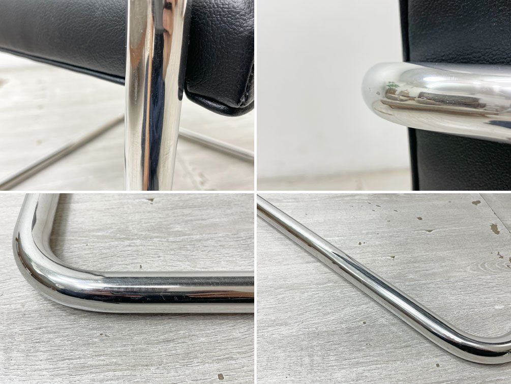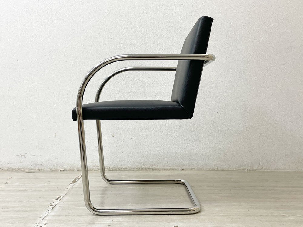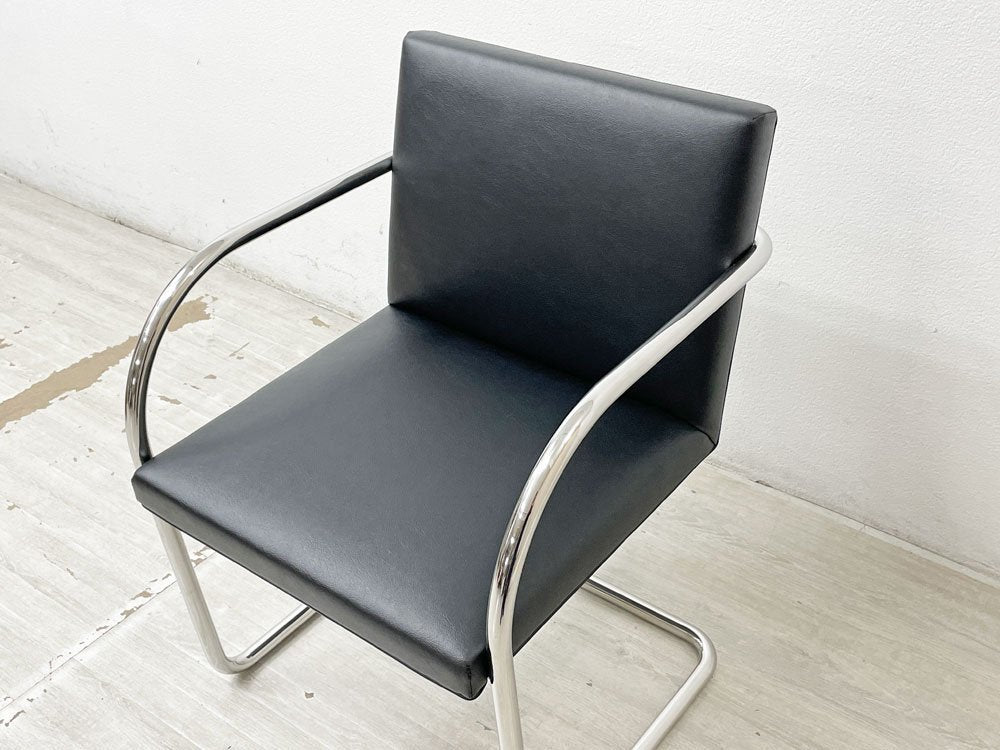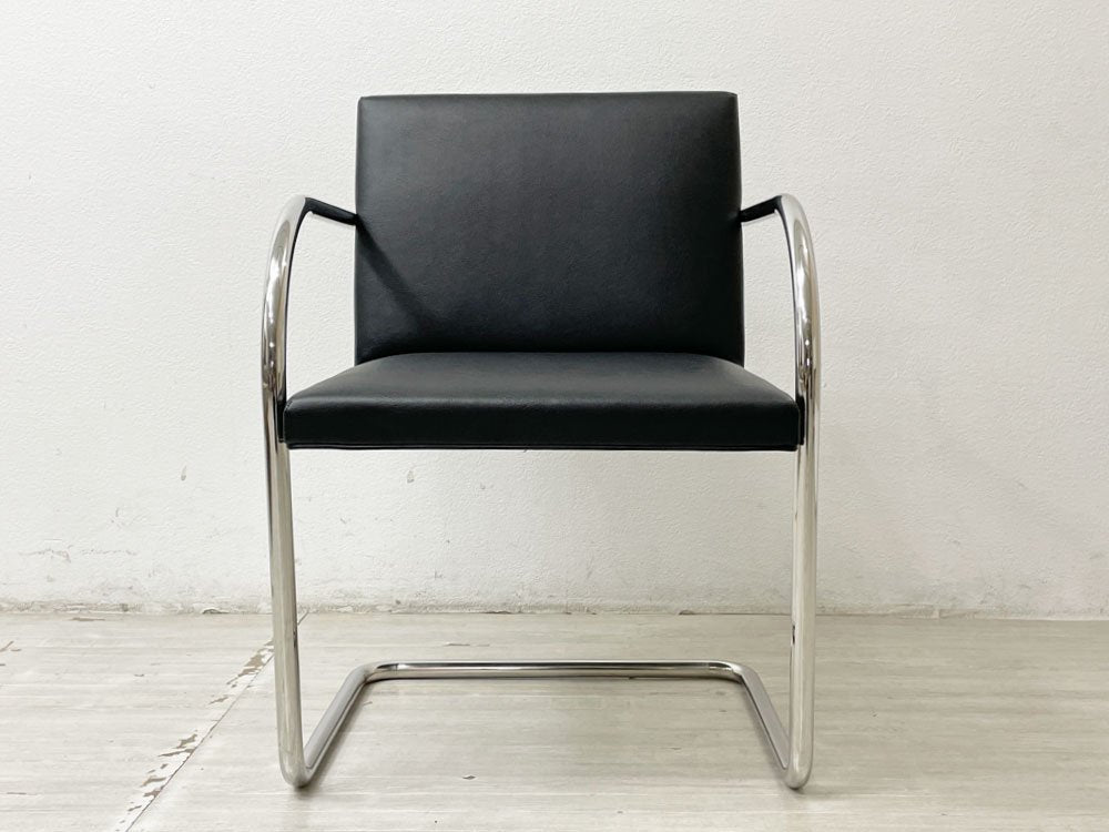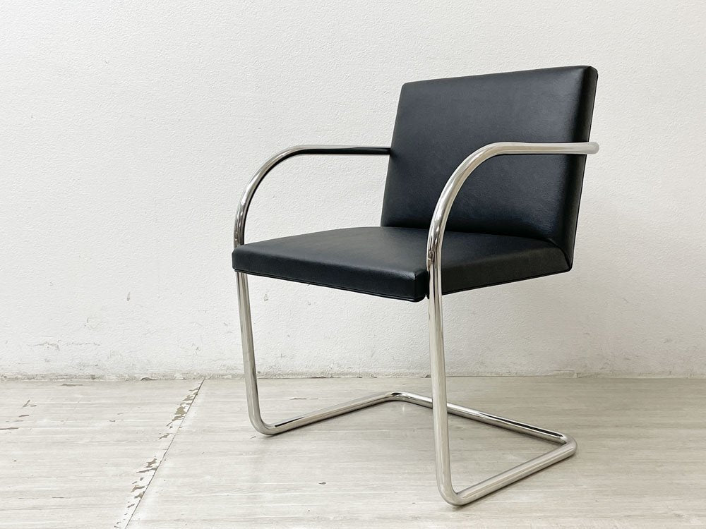 ノル knoll ブルーノ アームチェア チューブラー Brno Arm Chair Tubular ミースファンデルローエ カンチレバー ブラック PVCレザー 張替済み ●