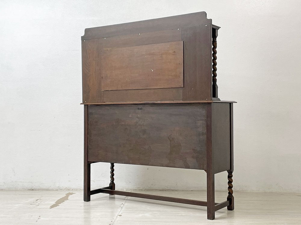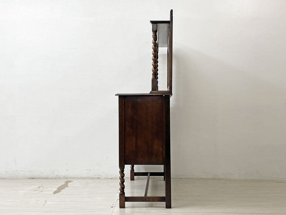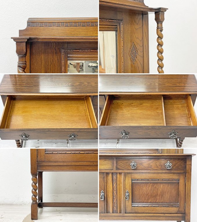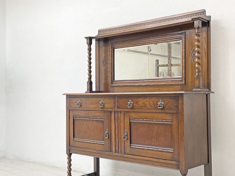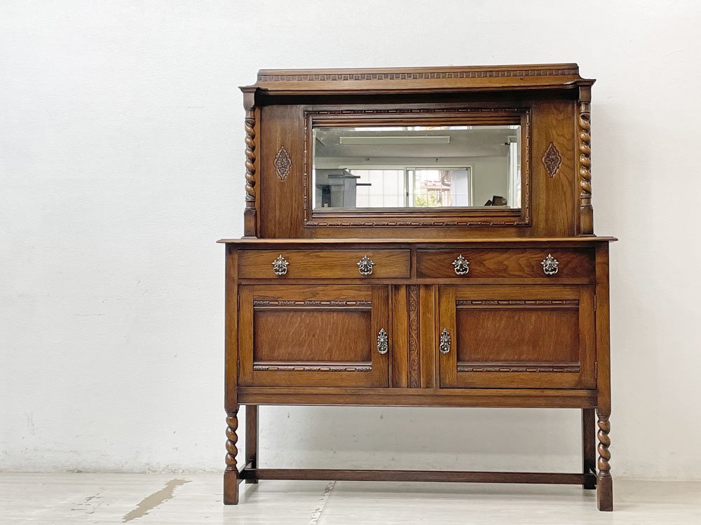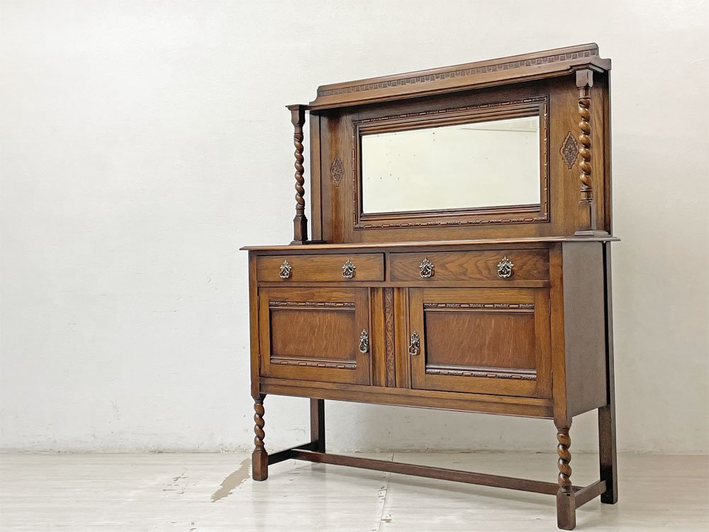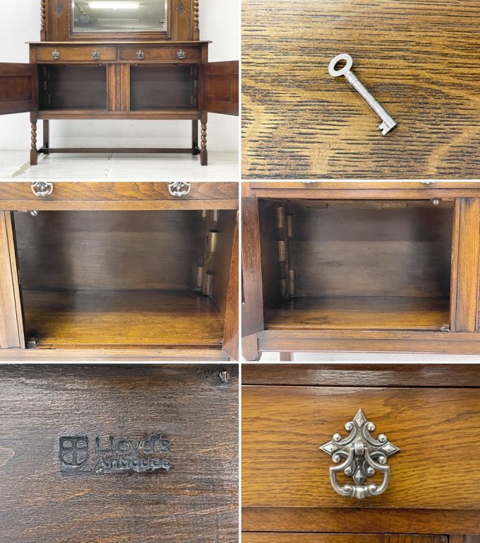 ロイズアンティークス Lloyd's Antiques 英国アンティーク ミラーバック サイドボード キャビネット 収納棚 鏡台 鍵付き オーク材 UKビンテージ 英国家具 ●