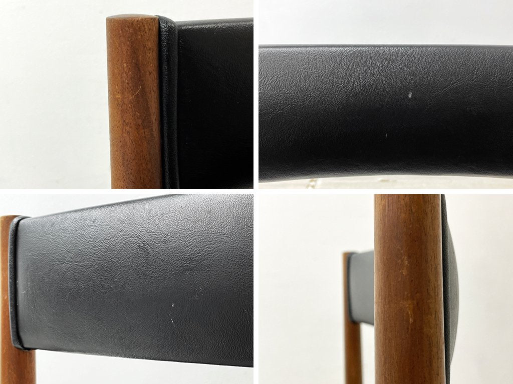 こちらはビンテージ品となります。経年に伴う擦れや小傷、スクラッチ傷や打痕、色褪せ、レザーシート部分のくすみ等がございます。また木部接合部に隙間が生じている箇所がございますが、補修された跡があり、ガタツキやグラつき等は特に感じられません。その他美観を大きく損ねるような汚れや、機能を損なうような大きなダメージなどは特にございません。