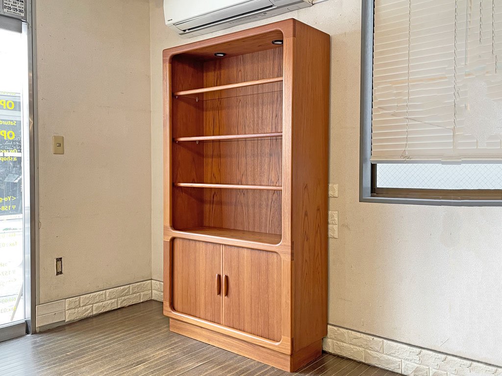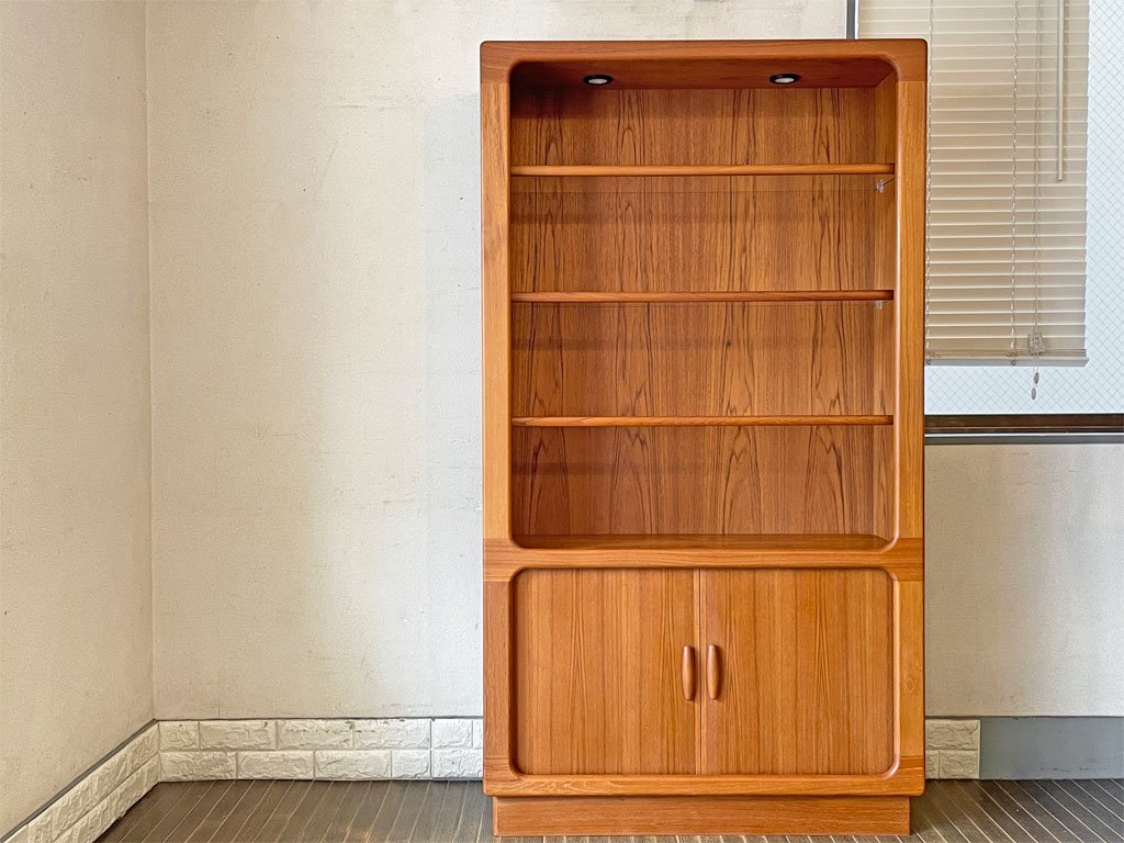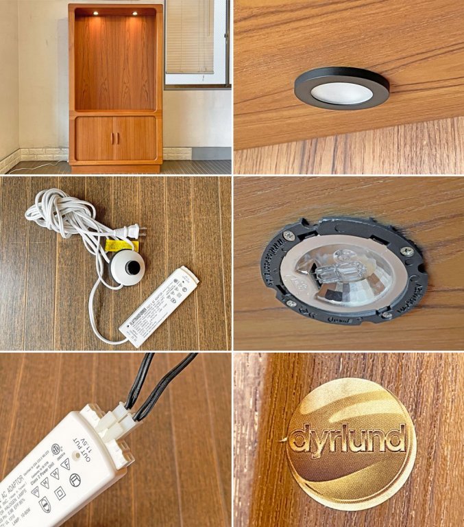 デューロン dyrlund ビンテージ キュリオケース 飾り棚 チーク材 無垢材 蛇腹扉 ロールトップ 照明付 デンマーク ◎