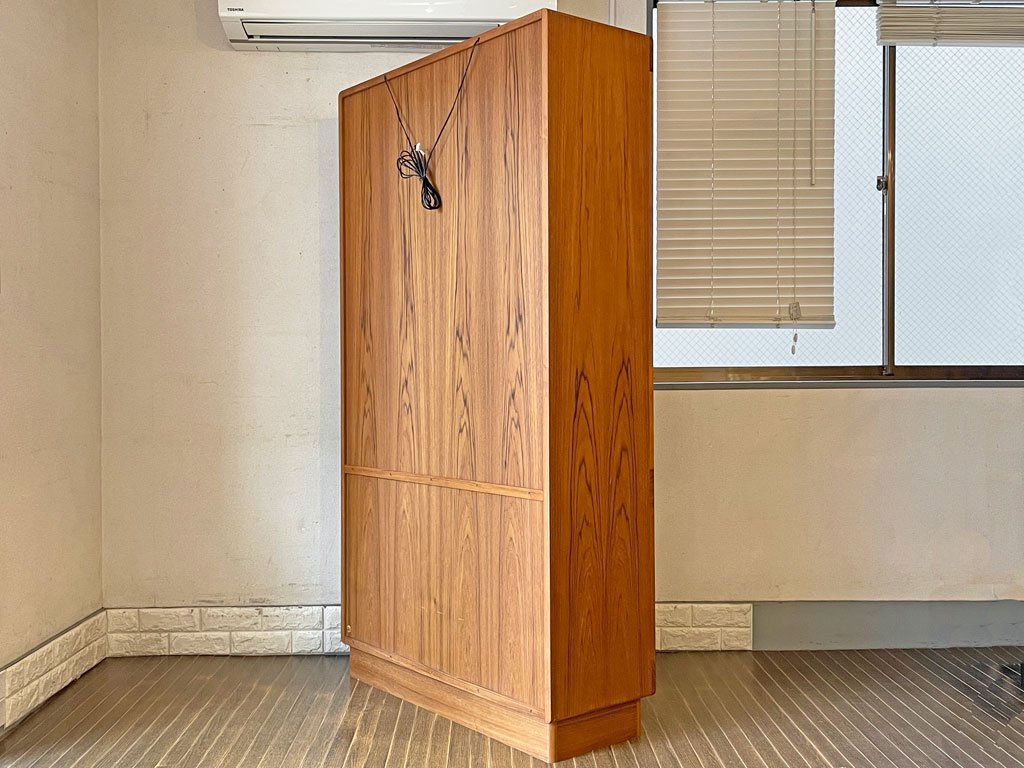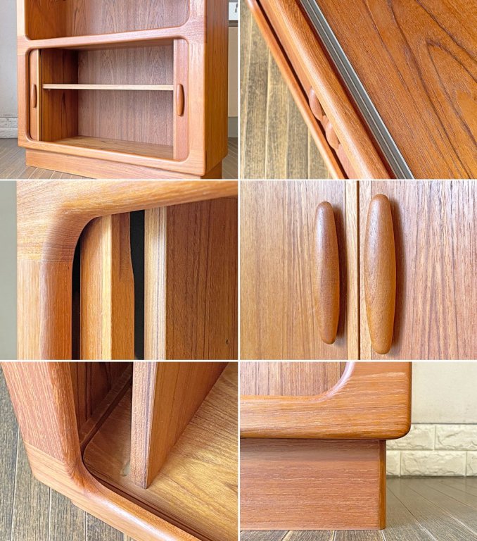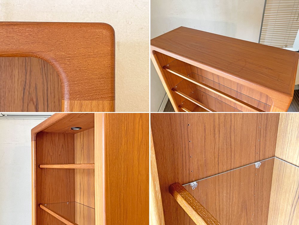 デューロン dyrlund ビンテージ キュリオケース 飾り棚 チーク材 無垢材 蛇腹扉 ロールトップ 照明付 デンマーク ~拘り抜かれチークの深み~