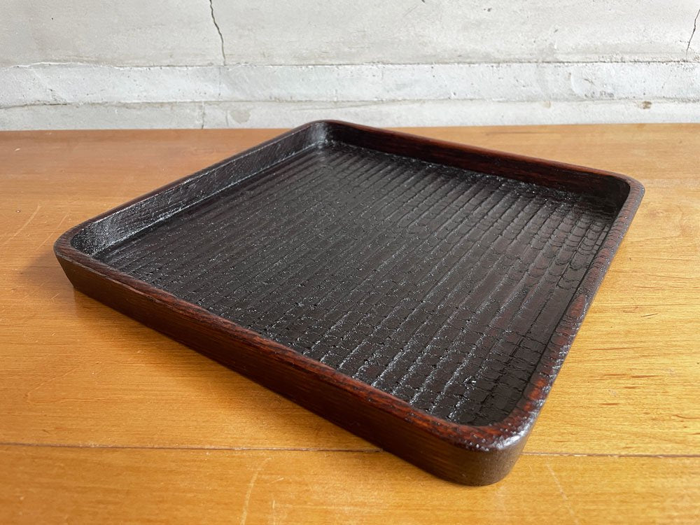 佃眞吾 我谷盆 8寸 トレイ 拭漆 栗材 24×24cm 現代作家 ♪