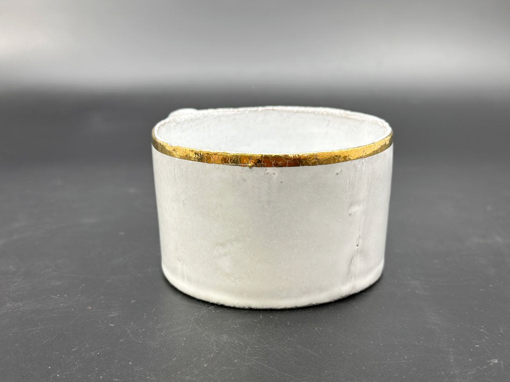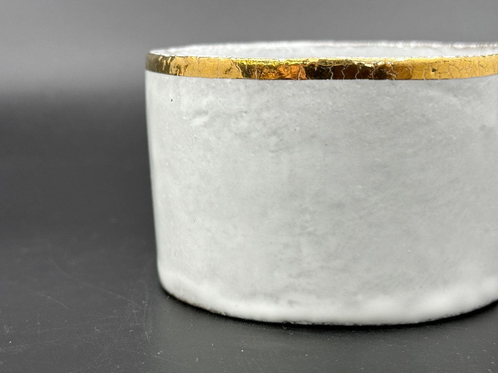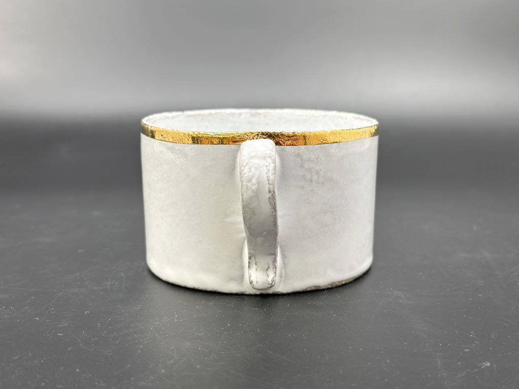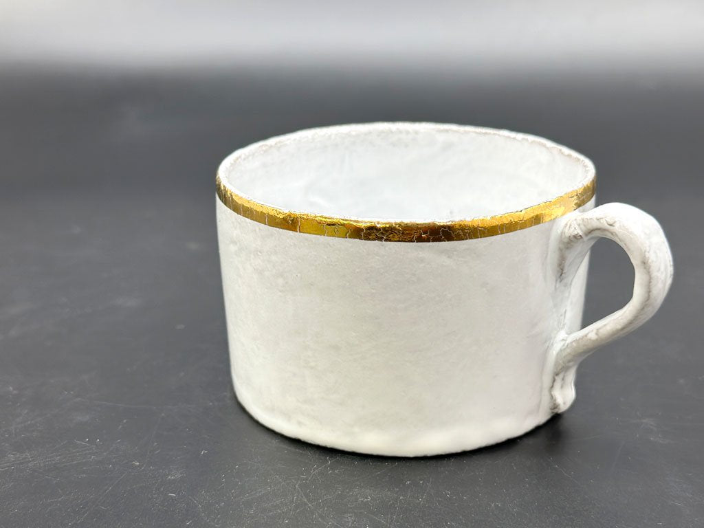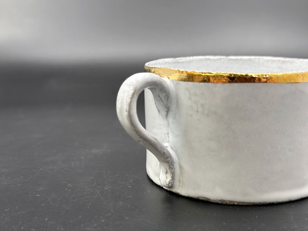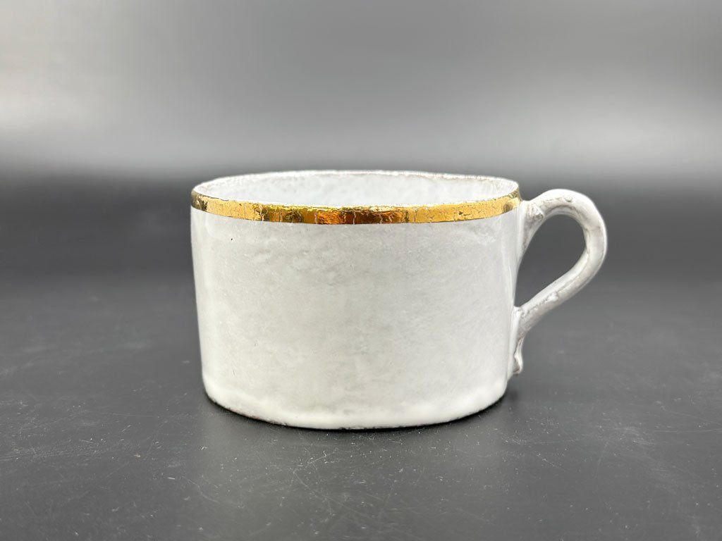 こちらの『 クレジュス Cresus カップ 』は、「大富豪」を意味するその名の通り、口元に華美になり過ぎない細い金彩をあしらい、落ち着いたホワイト色の釉薬との心地よいコントラストを演出しています。
