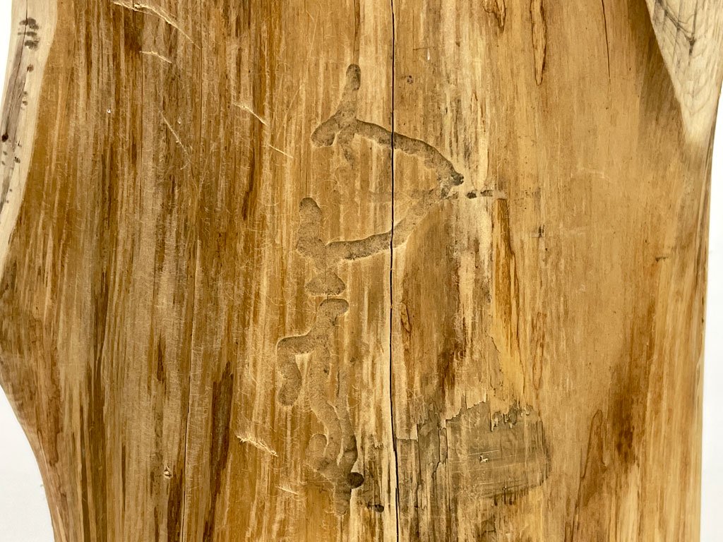 使用に伴う擦れや小傷、打痕や表面の剥がれがございます。また、木材の性質上、製造時から割れが入っておりますが、実使用には問題ございません。今後も十分実用いただけるコンディションを保っております。