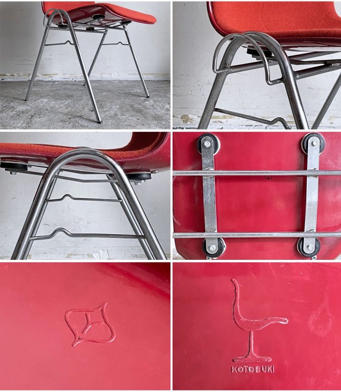 コトブキ KOTOBUKI 柳宗理 FRP サイドチェア 別注 レッドシェル レッドファブリック スタッキングベース ジャパニーズミッドセンチュリー ビンテージ Lowタイプ ■