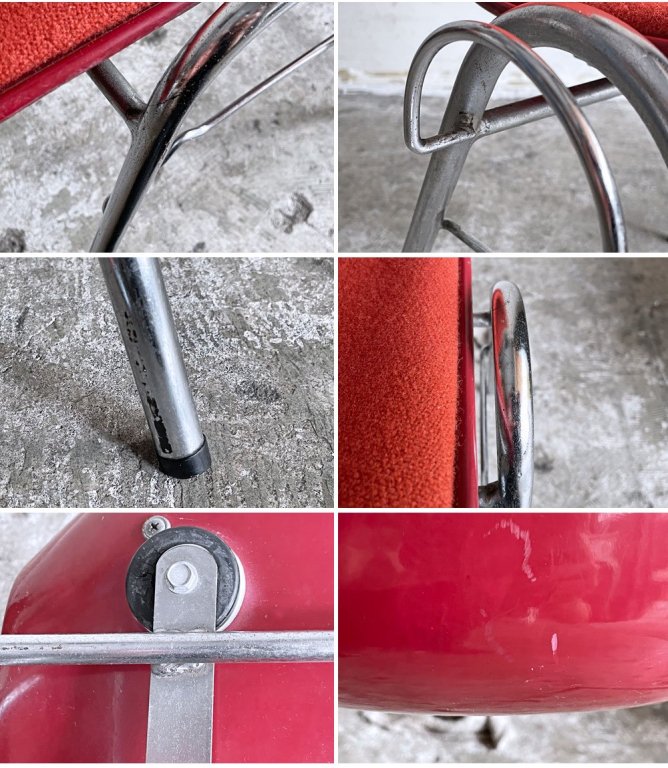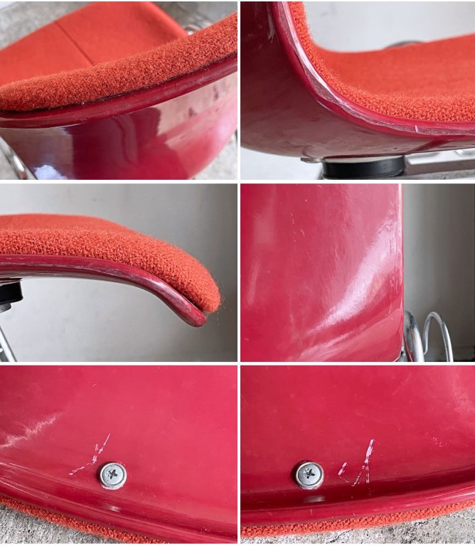 FRP サイドチェア 別注 レッドシェル レッドファブリック スタッキングベース