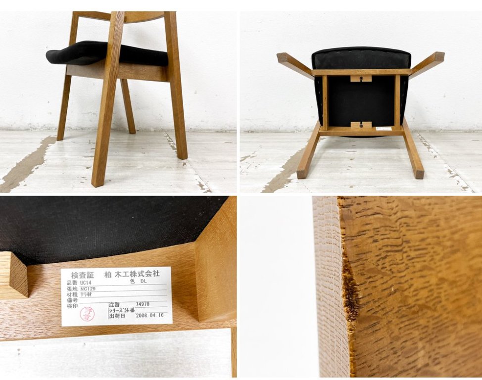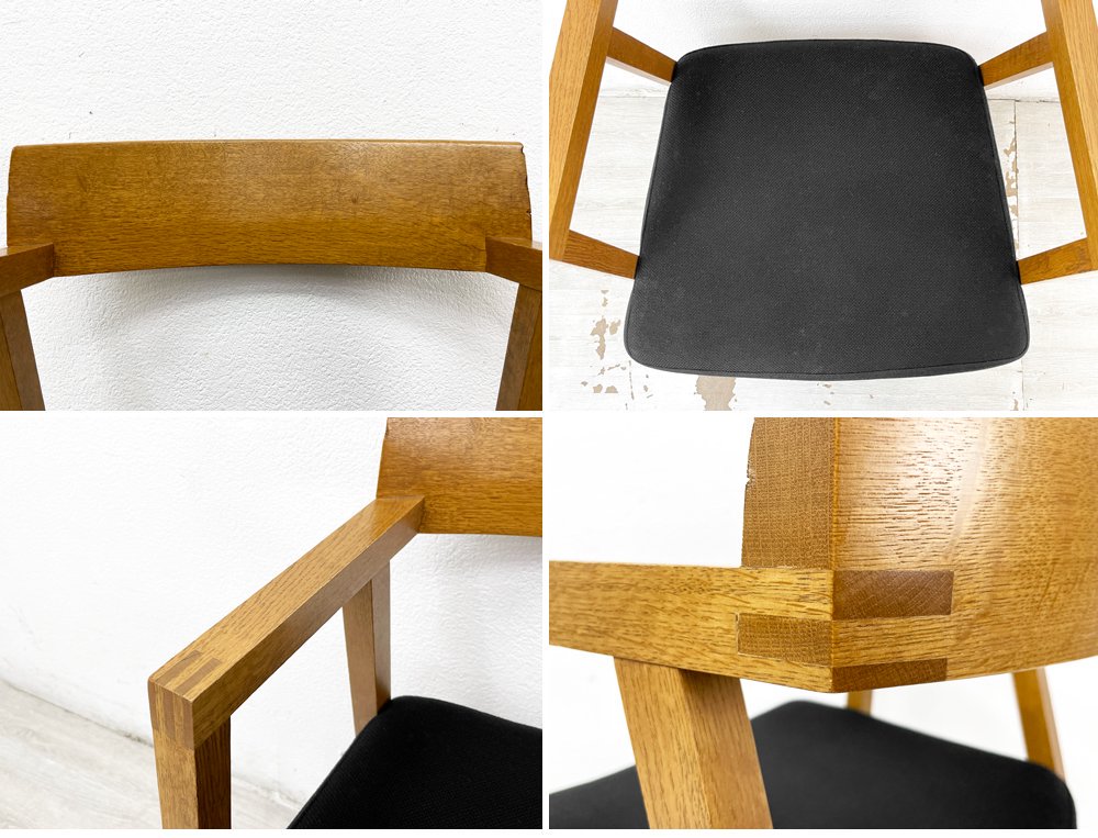柏木工 KASHIWA UC14 アームチェア ダイニングチェア オーク無垢材 ファブリック ブラック あられ組 飛騨家具 D ●
