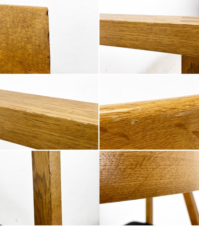 使用に伴い、フレームには擦れや傷、打痕、補修痕などがございます。また、ファブリックには、染み、色褪せ、取りきれない汚れなどが見受けられますが、使用上問題となる大きなダメージはございません。これからも気持ち良く実用頂けるコンディションを保っております。